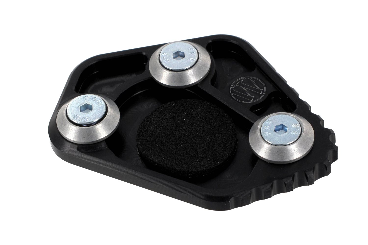 Eine genau formgefräste Verbreiterungsplatte, die schnell an den Seitenständer geschraubt wird, beseitigt wirkungsvoll diesen konstruktiven Mangel. Und damit der Seitenständer locker mit der Stiefelferse ausgeklappt werden kann, haben wir eine Außenverzahnung eingearbeitet. Die Fakten, Wunderlich Seitenständer-Auflagevergrößerung S 1000 R: Eine extrem erleichterte Verbreiterung, die bei eingeklapptem Seitenständer kaum sichtbar ist. Nur die Verzahnung zeigt sich als technischer Leckerbissen.Beschreibung zu Wunderlich Seitenständer-Auflagevergrößerung S 1000 R- schwarz anzeigen