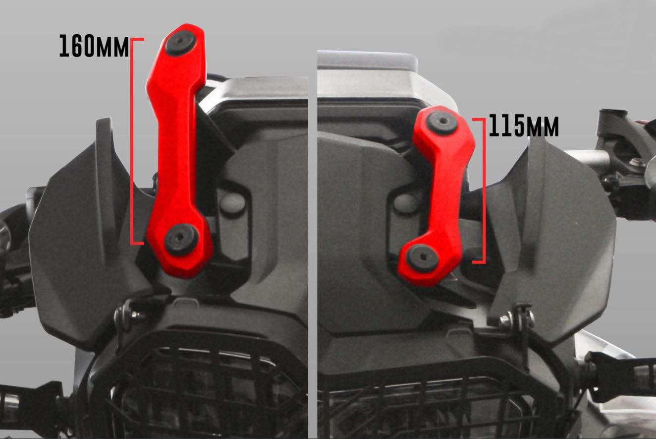 Hinweis: Diese Verkleidungsscheibe ist ausschließlich für Modelle mit der kurzen Scheiben-Halterung geeignet. Die kurze Scheibenhalterung ist die Standard-Scheibenhalterung bei der F 750 GS mit 115 mm Abstand der Schraubenlöcher. Verfügt Ihre F über eine lange Scheibenhalterung mit 160 mm Schraubenabstand (kann beim Fahrzeugkauf der F 750 GS optional bestellt werden), ordern Sie bitte die Verkleidungsscheibe 20230-305.