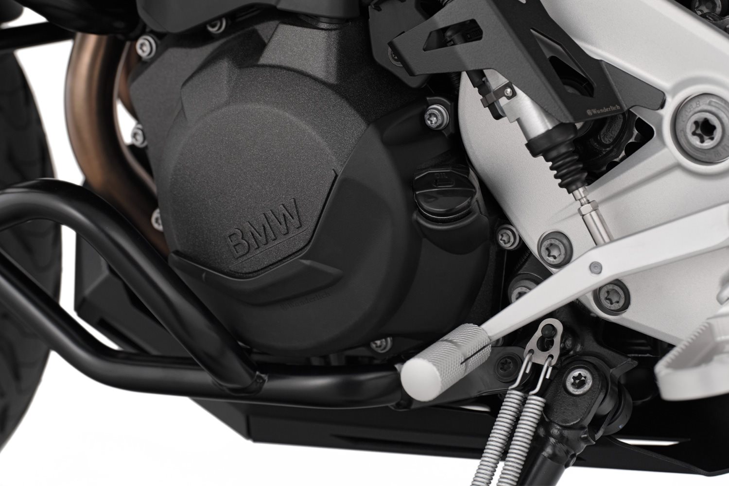 Die beiden recht komplex gestalteten Original Motordeckel für die Lichtmaschine und die Kupplung sind bei einem unglücklichen Umfaller oder bei einem Sturz gefährdet. Zum Schutz der empfindlichen Gehäusedeckel haben wir ein Set aus passgenauen, schlagzähen, leichtem Covern entwickelt. Sie zeichnen sich durch ihr integriertes, ansprechendes Design aus, das die gefährdeten Bereiche zuverlässig schützt und gleichzeitig das Design der Gehäusedeckel betont und insbesondere die erhabenen BMW-Schriftzüge freistellt. Die Bauteilform und die Aufnahmepunkte der Cover haben unsere Entwickler so konstruiert, dass mechanische Belastungen und Kraftspitzen gleichmäßig über die jeweilige Bauteilstruktur verteilt und abgebaut werden. Für eine zusätzliche Dämpfung sorgt ein auf der Innenseite angebrachtes Elastomer-Formelement aus Silikon. Dieses dichtet die Cover zusätzlich gegen die Lichtmaschinen- und Kupplungsdeckel ab, so dass Verschmutzungen, Feuchtigkeit und Staub außen vor bleiben. Die Cover sind in wenigen Minuten mit dem zugehörigen Anbausatz zu montieren. Die Fakten: Technische Daten Besonderheiten Wunderlich ProduktkategorieBeschreibung zu Wunderlich Motorschutzcover Set für Kupplung und Lichtmaschine- schwarz anzeigen