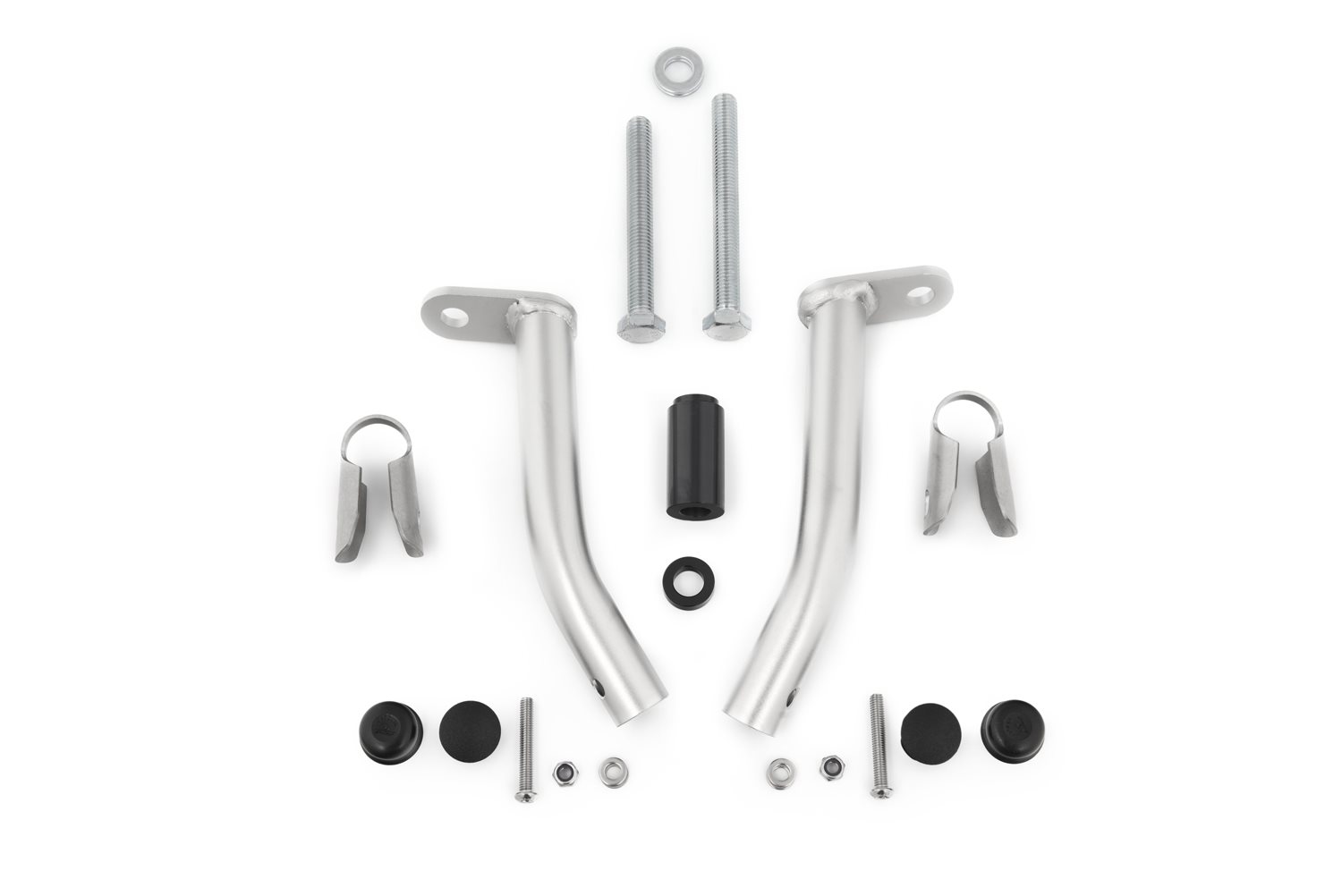 Präzise auf CNC-Rohrbiegemaschinen geformt und sauber verschweißt, fertigen wir die Verstärkung aus Präzisionsedelstahlrohr mit einem Rohrdurchmesser von 25 mm. Die Oberflächen sind glasperlengestrahlt und elektropoliert. So integriert sich die Verstärkung auf dezente Art perfekt ins Design des originalen Motorschutzbügels.