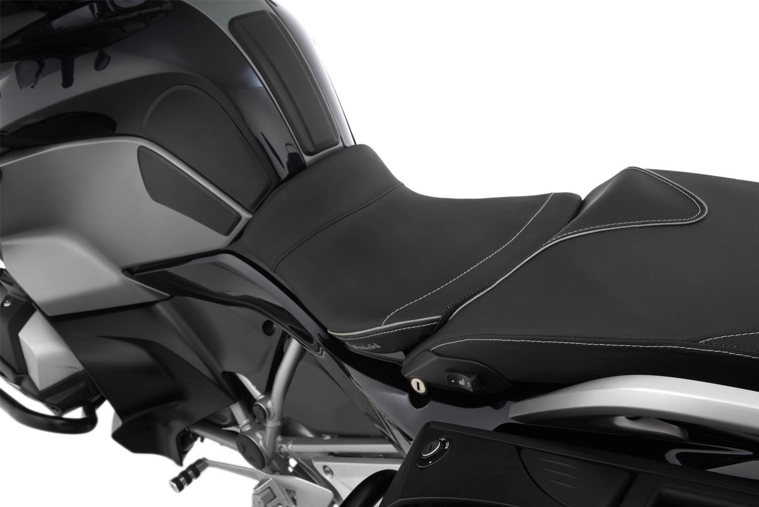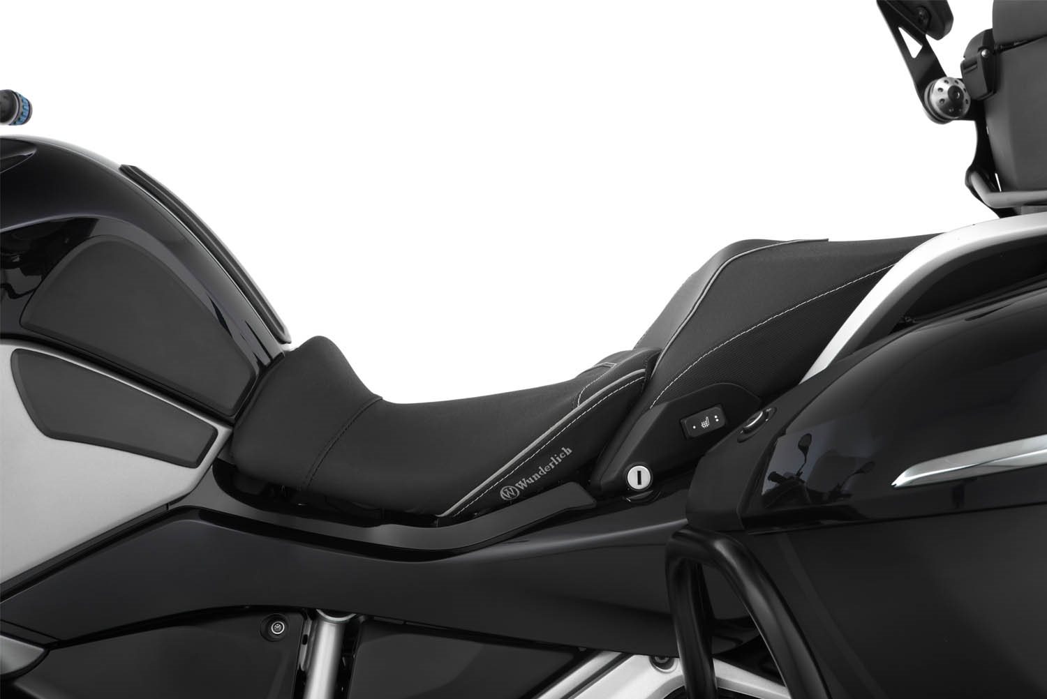 Auch unsere in der Sitzhöhe reduzierten Sitze fertigen wir mit einer charakteristischen, ergonomischen 3-D-Kontur, die den Fahrer mit seinem BMW-Motorrad eins werden lässt. Form und Neigung des aufwändig verarbeiteten Sitzbankkerns, in den ein Sitzheizungselement integriert ist, unterstützen die ergonomische vorteilhafte, natürliche Haltung des Beckens. So integriert, fährt es sich einfach entspannt und damit aktiv. Und, kein Zweifel, entspanntes Sitzen schafft ein Plus an passiver Sicherheit. Bei unseren ThermoPro Fahrer- und Beifahrersitzbänken liegt die Temperatur der Sitzfläche im Hochsommer in praller Sonne um bis zu 25°C niedriger im Vergleich mit herkömmlichem Bezugsmaterial. Für alle AKTIVKOMFORT-Sitzbänke gilt: Das Durchsitzen der Polsterung wird aufgrund der durchdachten Konstruktion zuverlässig vermieden und der Sitzdruck auf einer größeren Fläche gleichmäßig verteilt, was zu einer spürbar geringeren spezifischen Druckbelastung am Allerwertesten führt. Angenehm! Die ergonomische Form des Spezialschaums entlastet zudem das druckempfindliche Steißbein. Sie bieten perfekten Halt und aktive, sichere Kontrolle bei forcierter Fahrt, ganz besonders auch beim Bremsen: Wer kennt das nicht, wenn die Sozia beim Ankern plötzlich von hinten schiebt und man sich unvermittelt abstützen und gleichzeitig, in einer vielleicht brenzligen Lage, auch noch lenken muss. Mit Wunderlichs eigens entwickelter Stützkontur gehören diese Schreckmomente beim Bremsen der Vergangenheit an. Die innovative, ergonomische 3-D-Kontur sorgt auch dafür, dass Druckstellen an den Innenschenkeln beim Stehen an der Ampel, passé sind. Die Fakten: Funktion Technische Daten Hinweis: Aufgrund der spezifischen Wärmekapazität der eingearbeiteten Geleinlage, verlaufen die Phasen des Aufheizens und des Abklingens der Sitztemperatur harmonischer, physikalisch bedingt sind sie etwas länger als bei der originalen Sitzbank. Besonderheiten Wunderlich ProduktkategorieBeschreibung zu Wunderlich Fahrer Sitzbank AKTIVKOMFORT Sitzheizung und Geleinlage - schwarz - tief anzeigen