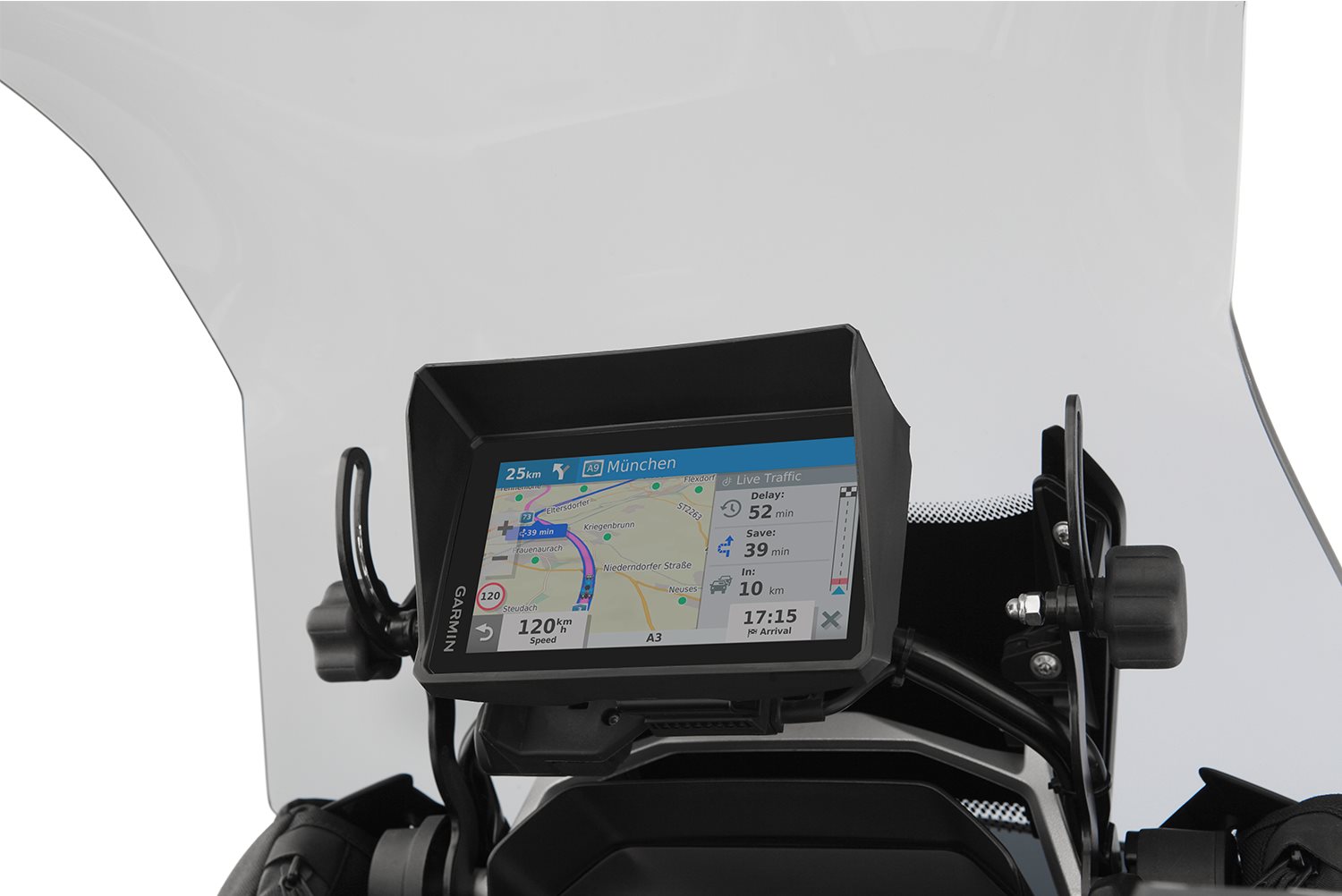 Funktion und Produktmerkmale des Wunderlich Navi-Blendschutzes für das Garmin Zumo XT-Navi Technische Daten Ihre Wunderlich Vorteile Mit diesem hochwertigen, dreiseitigen Blendschutz für das GARMIN Zumo XT bleibt das Display des Navis dank der optimalen Abschattung auch bei ungünstig stehender Sonne stets sehr gut lesbar. Das passgenaue, formstabile Clip-System dieses Blendschutzes sorgt für sicheren Halt auch bei heftigen Erschütterungen oder Vibrationen (z.B. im Gelände) oder bei starkem Fahrtwind. Unser Blendschutz trotzt zuverlässig auch heftigen Vibrationen und Erschütterungen sowie starkem Fahrtwind. Damit unterscheidet sich der solide und durchdachte Wunderlich Blendschutz von billigen Lösungen.Beschreibung zu Wunderlich Geräte-Blendschutz GARMIN Zumo XT- schwarz anzeigen