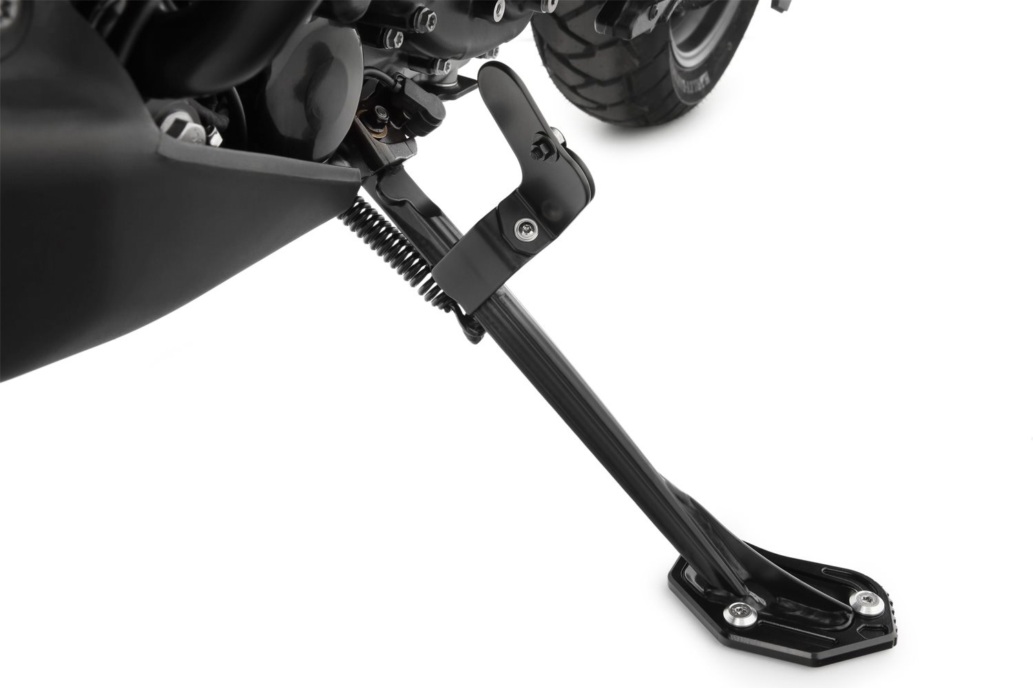 Sicherer Stand für Ihre Pan America oder Pan America Special auf jedem Untergrund - dank der praktischen Wunderlich Seitenständer-Auflagenvergrößerung
