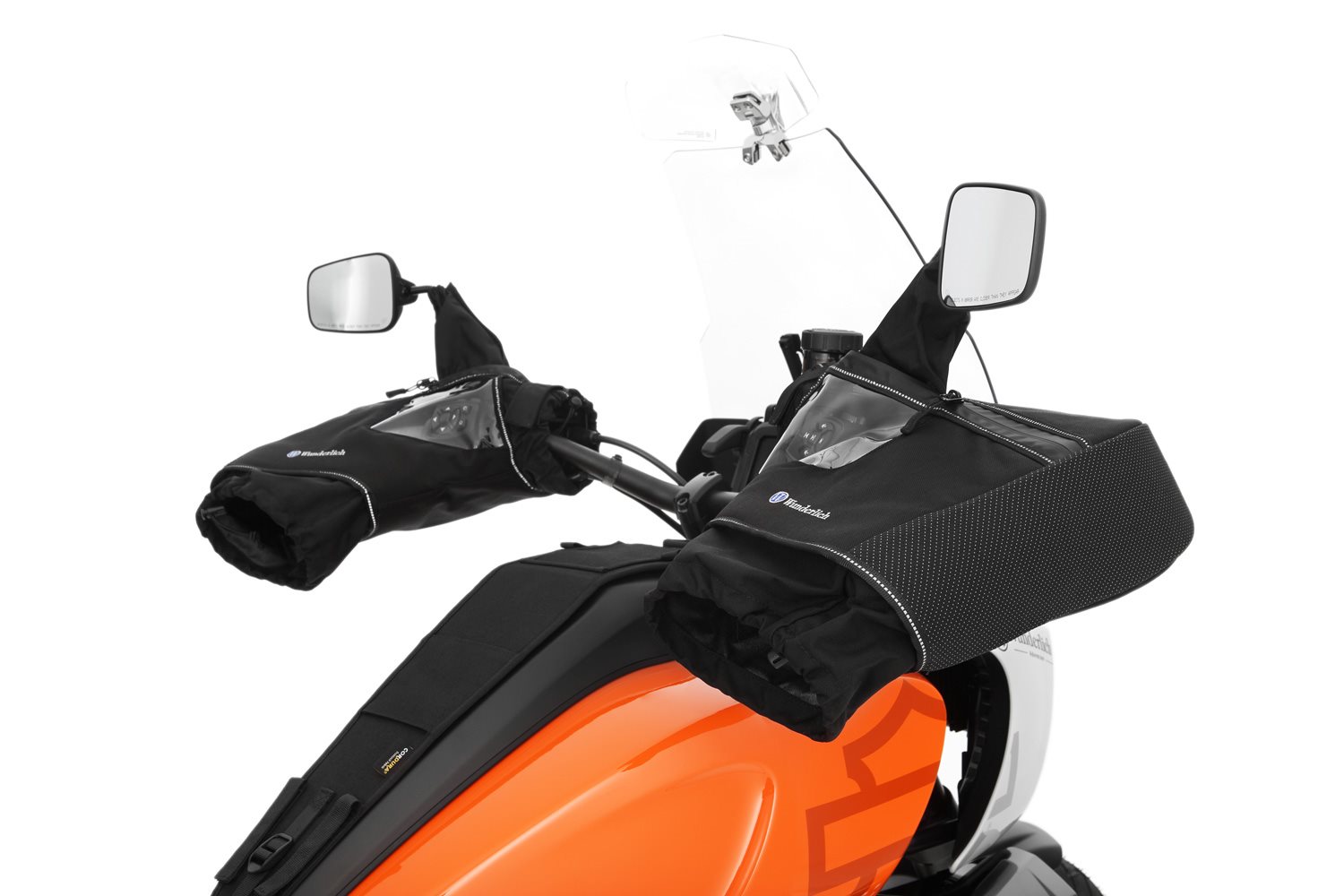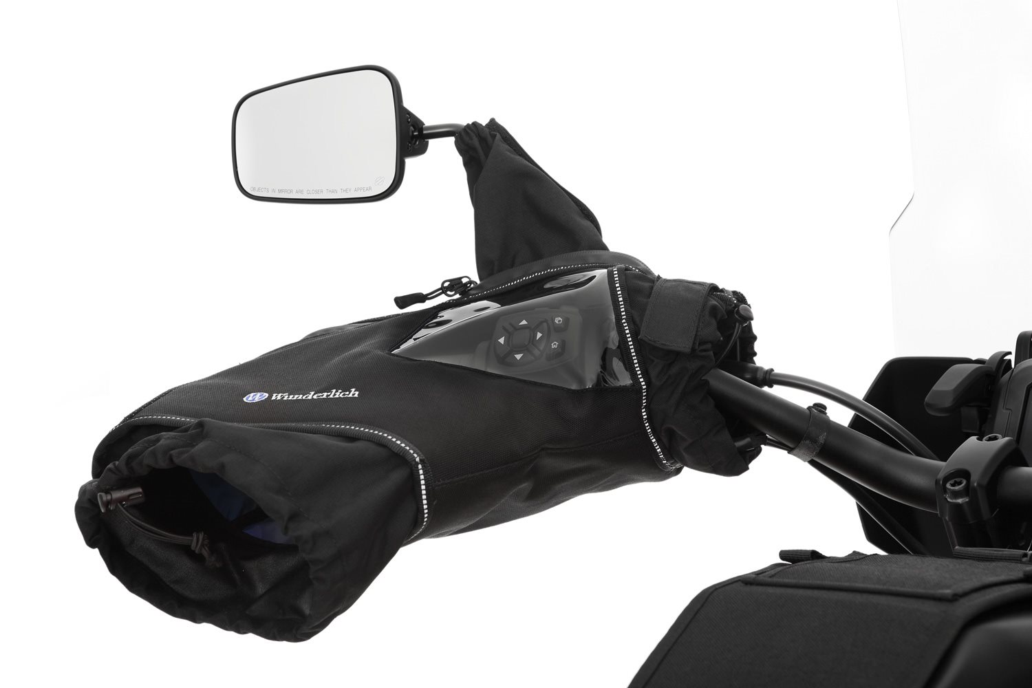 Die Griffheizung wärmt, wenn vorhanden, nur die Hand-Innenflächen. Der beste Schutz vor kalten Händen ist deren zuverlässige Wärmeisolation und die Vermeidung oder der Ausschluss von Konvektion. Das beste Mittel dazu: Durchdacht, konstruierte, hochwertigen Lenkerstulpen. Unsere Lenkerstulpen sind universell bei einer Vielzahl an Motorrädern einsetzbar. Sie bestehen aus wasserabweisendem und schmutzunempfindlichem, hochwertigem CORDURA Gewebe werden links und rechts einfach über die Lenkergriffe gezogen und zusätzlich am mit einer am Spiegelarm befestigten Manschette ausgestattet, die mit Klettband und Reißverschluss befestigt wird und dabei dicht abschließt. Die Eingriffe in die Stulpen lassen sich dank einer elastischen Kordel, die über einen Stopper verfügt, ebenfalls dicht verschließen. Unsere Lenkerstulpen sind mit einem auf der Innenseite gepolsterten Formeinsatz ausgestattet. Dieses Merkmal stellt sicher, dass die Stulpen auch bei hohen Geschwindigkeiten und den damit verbundenen hohen Windlasten formstabil bleiben und damit einen soliden, geschützten Raum, der für die Wärmeisolation sorgt, und die sichere, ungehinderte Bedienung der Armaturen und Hebel mit den Händen sicherstellt. Der Formeinsatz ist insbesondere dann hilfreich und von großem Vorteil, wenn keine Handprotektoren montiert sind. Im Bereich der Schaltereinheiten der Armaturen haben wir großzügig dimensionierte Klarsichtfenster aus UV-stabilem PVC eingearbeitet, die das sichere, eindeutige Bedienen der Armaturen erlauben. Unsere Stulpen sind so großzügig dimensioniert, sodass Sie auch über die besagten Handprotektoren passen. Die Lenkerstulpen sind mit reflektierenden Elementen ausgestattet. Das funktionale hochwertige Design unserer Lenkerstulpen hat nichts gemein mit den üblichen einfachen Lösungen, die am Markt zu finden sind. Sie sind mit viel Erfahrung durchdacht konstruiert und werden ausschließlich aus hochwertigen Materialien hergestellt. Speziell entwickelte Motorrad Lenkerstulpen für alle mit und ohne Handprotektoren ausgerüsteten Fahrzeuge sind der Garant für jede Menge Fahrspaß auch bei tiefsten Temperaturen. Fakten: Funktion Technische Daten BesonderheitenBeschreibung zu Wunderlich Motorrad Lenkerstulpen- schwarz anzeigen