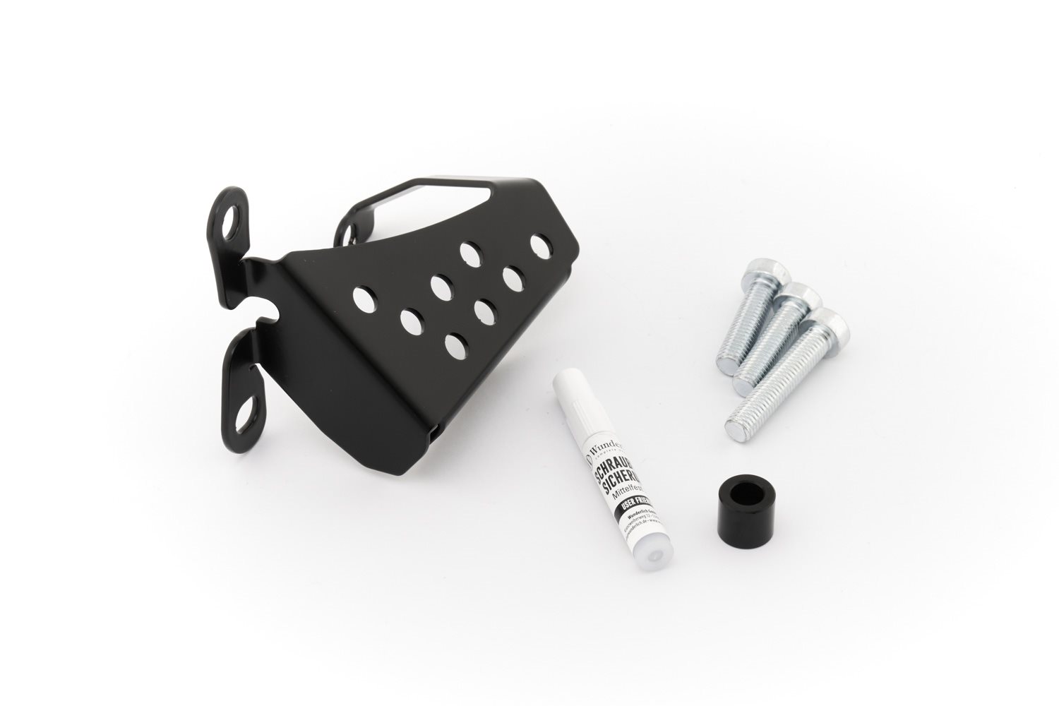 Der Schalter, der für die zuverlässige Zündunterbrechung bei ausgeklapptem Seitenständer sorgt, hat schon viel Kummer verhindert. Denn das Losfahren mit ausgeklapptem Seitenständer kann sehr unangenehme Folgen für Fahrer und Maschine haben. Es ergibt also Sinn, den exponierten Schalter vor Beschädigungen durch Steinschlag oder Sturz anständig zu schützen. Denn wird der Schalter beschädigt, springt der Motor nicht mehr an. Die hohe Schutzwirkung ergibt sich aus der Steifigkeit des gekanteten, mit zwei längs eingefrästen dezenten Öffnungen versehenen, 2 mm-Aluminiumblechs. Es umrahmt den exponierten, Schalter mit seiner stabilen Zweipunktbefestigung und schützt diesen sicher. Damit wird die Gefahr der Beschädigung des Schalters besonders im engagierten Offroadeinsatz zuverlässig reduziert. Die Montage erfolgt unkompliziert an den gut zugänglichen Befestigungspunkten am Fahrzeug.