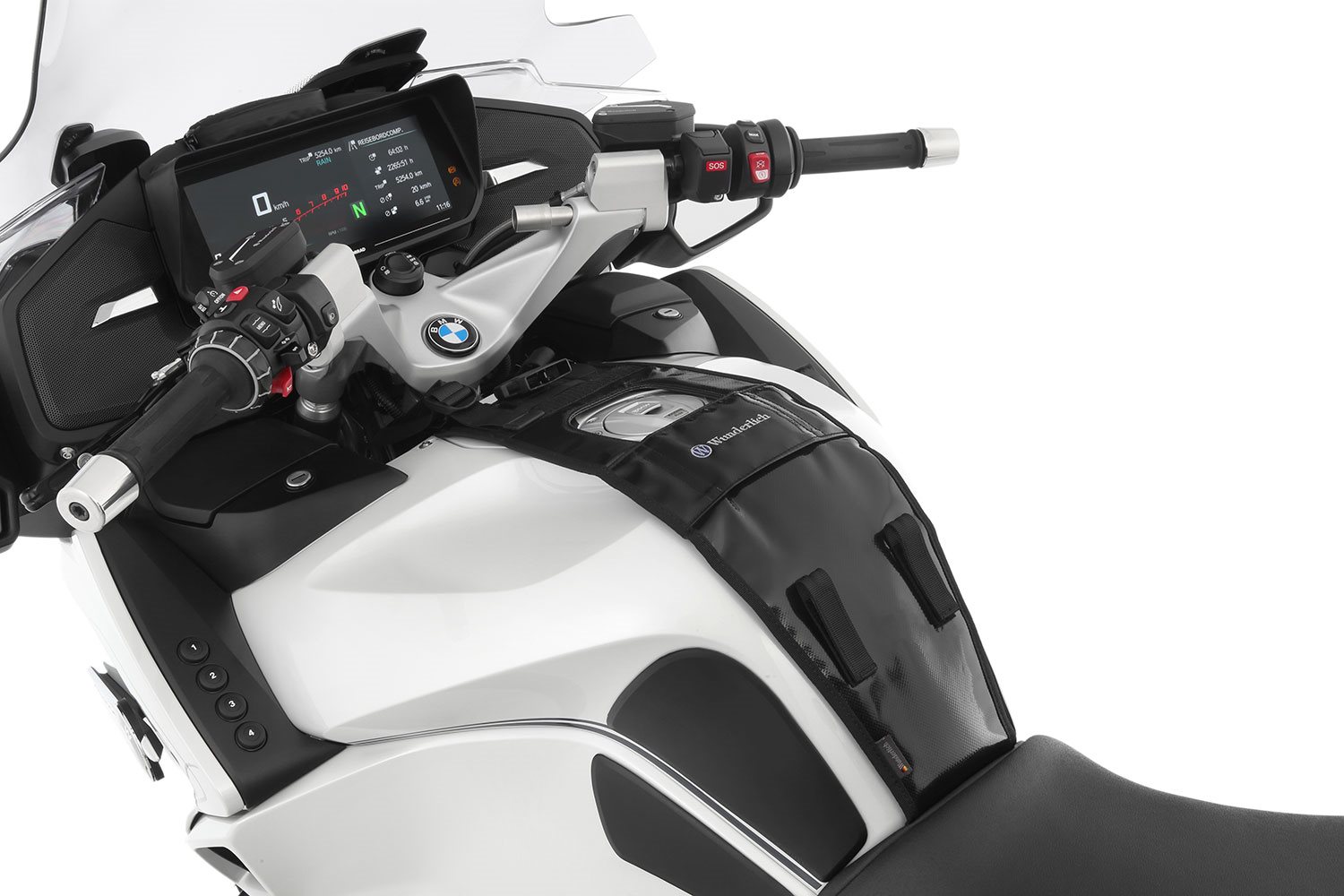 Die Systemhalterung wird mit wenigen Handgriffen am Fahrzeug befestigt und nimmt den Tankrucksack per Schnellbefestigung auf. Einfach die Haltezunge des Tankrucksacks durch die Aufnahme an der Halterung schieben und vorne verschließen. Eine einfache und deshalb geniale Schnellbefestigung, die auch mit Handschuhen und klammen Fingern ein sekundenschnelles An- und Abbauen ermöglicht: