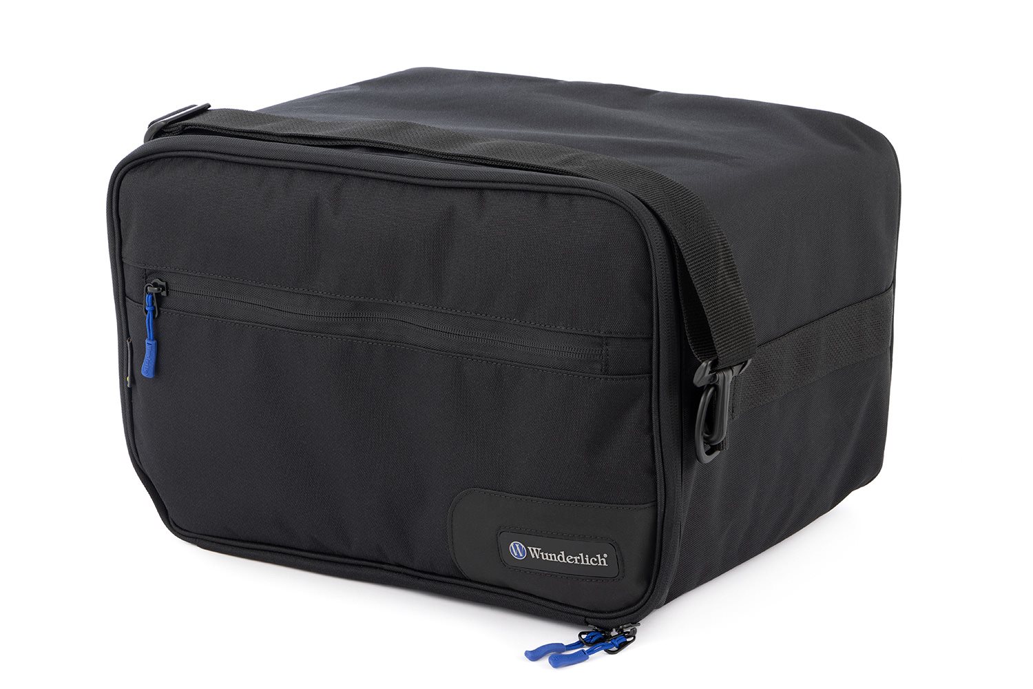 Unsere hochwertigen, robusten, formschönen Innentaschen erweisen sich als perfekt passend für die Original BMW Alukoffer, für unsere EXTREME Koffer regular (nicht die schmale slimline Variante) sowie alle gängigen Motorrad-Seitenkoffer vergleichbarer Größe (bitte Maßangaben beachten). Bei dieser Innentasche handelt es sich um diejenige für den linken Koffer. Wir haben sie maßgeschneidert, damit kein Platz verschenkt wird und Sie das Volumen von 44 Litern vollständig ausnutzen können. Damit Ihnen die Tasche aus robustem Polyester 600D die von Wunderlich bekannte maximale Funktionalität bietet, weist sie folgende weitere, funktionale Merkmale auf: Zum Schutz des Inhalts und zur Dämpfung von Vibrationen ist die Tasche mit einer Polsterung gefüttert, die ihr auch in leerem Zustand und trotz des geringen Eigengewichts Formstabilität verleiht. Zwei gegenläufige Zipper öffnen das Hauptfach über drei Seiten und erlauben als Toploader komfortables Packen von oben, damit der Inhalt der Tasche für Sie auch im Koffer stets griffbereit zugänglich bleibt. Die Tasche verfügt über ein Außenfach sowie ein Fach in der Klappe, die jeweils großzügig bemessen (> Din A4) und mit griffgünstigen Zippern verschließbar sind. Das Wunderlich typische blaue Innenfutter sorgt mit seinem kontrastierenden Hintergrund für Übersichtlichkeit - so kann nichts mehr in den Ritzen verschwinden. Für den Transport ins Hotelzimmer, haben wir einen komfortabel ausgestatteten Schultergurt angebracht. Mit Wunderlich Markenlogo. Hinweis Fakten Funktion Technische Daten Ihre Wunderlich VorteileBeschreibung zu Wunderlich Innentasche für BMW Aluminium Koffer - schwarz - links anzeigen