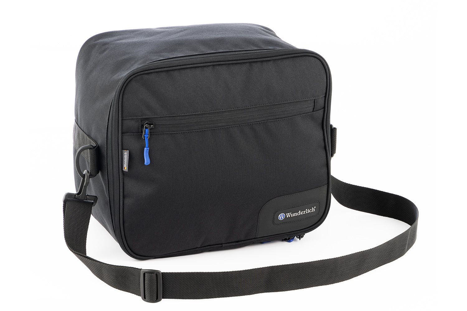 Unsere hochwertige, robuste, formschöne Innentaschen erweist sich als perfekt passend für das Original BMW Aluminium Topcase sowie alle gängigen Motorrad-Topcases vergleichbarer Größe (bitte Maßangaben beachten). Wir haben sie maßgeschneidert, damit kein Platz verschenkt wird und Sie das Volumen von 32 Litern vollständig ausnutzen können. Damit Ihnen die Tasche aus robustem Polyester 600D die von Wunderlich bekannte maximale Funktionalität bietet, weist sie folgende weitere, funktionale Merkmale auf: Zum Schutz des Inhalts und zur Dämpfung von Vibrationen ist die Tasche mit einer Polsterung gefüttert, die ihr auch in leerem Zustand und trotz des geringen Eigengewichts Formstabilität verleiht. Zwei gegenläufige Zipper öffnen das Hauptfach über drei Seiten und erlauben als Toploader komfortables Packen von oben, damit der Inhalt der Tasche für Sie auch im Topcase stets griffbereit zugänglich bleibt. Die Tasche verfügt über ein Außenfach sowie ein Fach in der Klappe, die jeweils großzügig bemessen (> DIN A4) und mit griffgünstigen Zippern verschließbar sind. Das Wunderlich typische blaue Innenfutter sorgt mit seinem kontrastierenden Hintergrund für Übersichtlichkeit - so kann nichts mehr in den Ritzen verschwinden. Für den Transport ins Hotelzimmer, haben wir einen komfortabel ausgestatteten Schultergurt angebracht. Mit Wunderlich Markenlogo. Hinweis Fakten Funktion Technische Daten Ihre Wunderlich VorteileBeschreibung zu Wunderlich Innentasche für BMW Aluminium Topcase- schwarz anzeigen