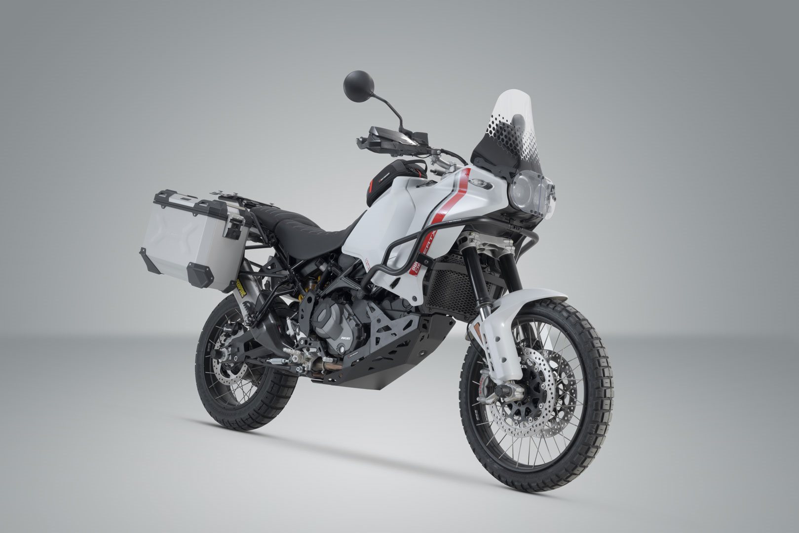 SW-MOTECH baut das silberne Alukoffer-System passend für die Ducati DesertX mit den modellspezifischen PRO Seitenträgern, die extrem belastbar sind.