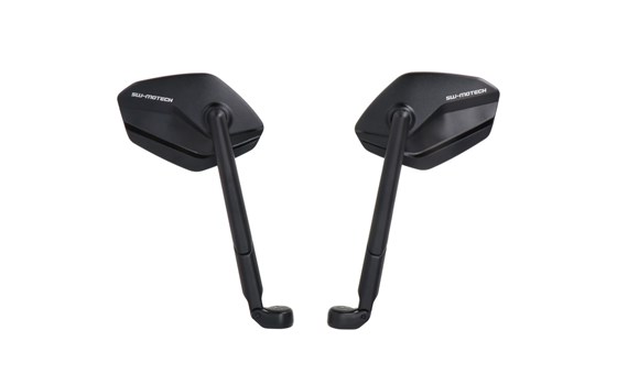 Die verstellbaren Spiegel im modernen und flachen Design fertigt SW-MOTECH aus schwarz eloxiertem Aluminium. Die Spiegelarme bestehen aus stufenlos verschiebbaren Elementen und sind jeweils um 30 Millimeter ausfahrbar. Die vielfältigen Einstellmöglichkeiten der Spiegel geben dem Piloten mehr Sicherheit durch besseren Überblick seines Umfeldes.