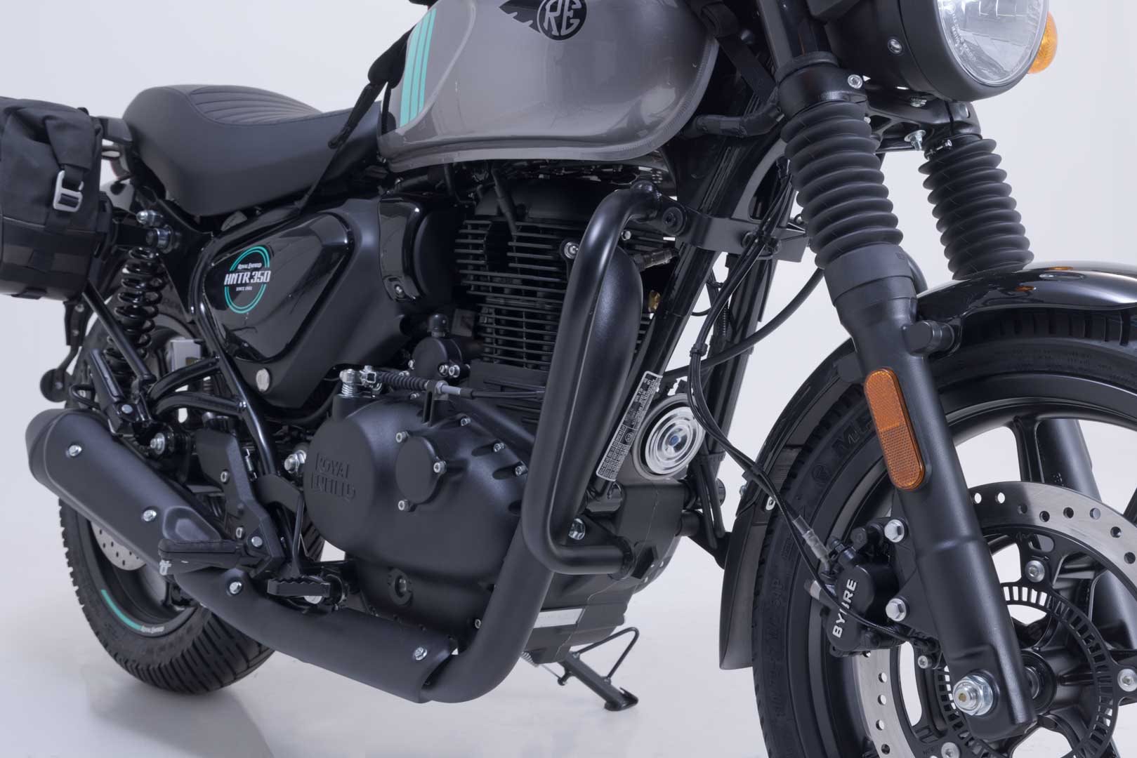 Passend zur Royal Enfield HNTR 350 werden die Sturzbügel mit witterungs- und korrosionsbeständiger Pulverbeschichtung in Schwarz angeboten.