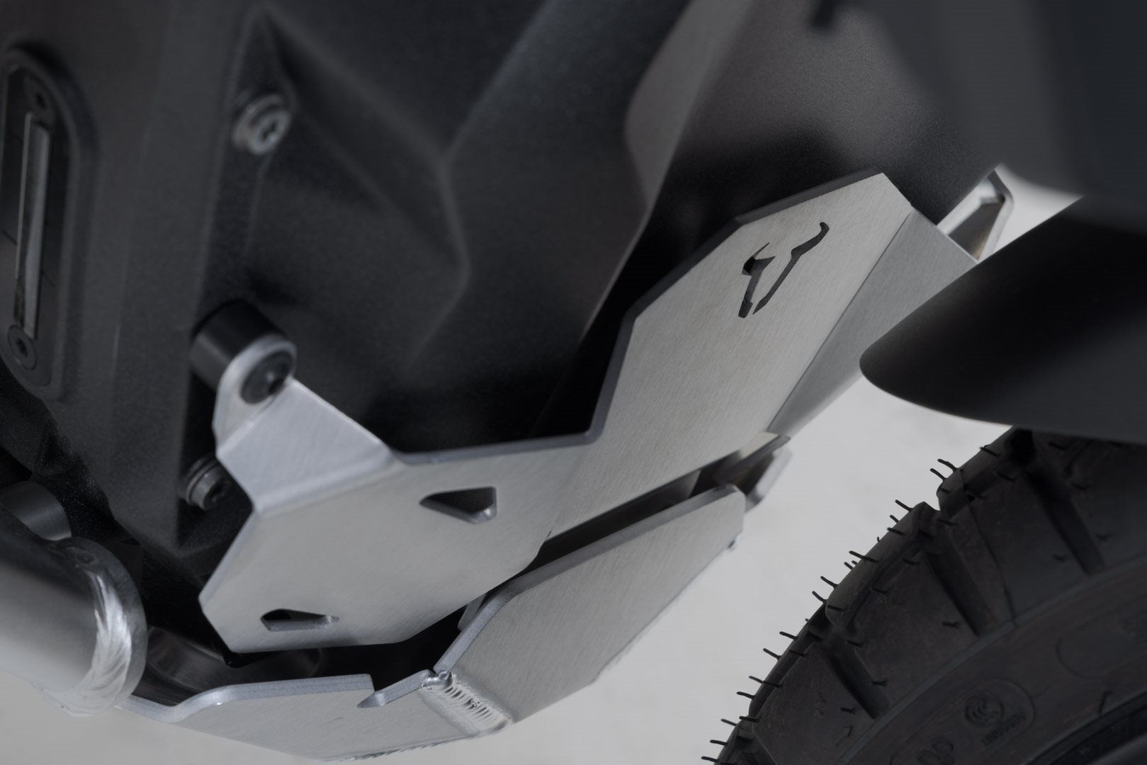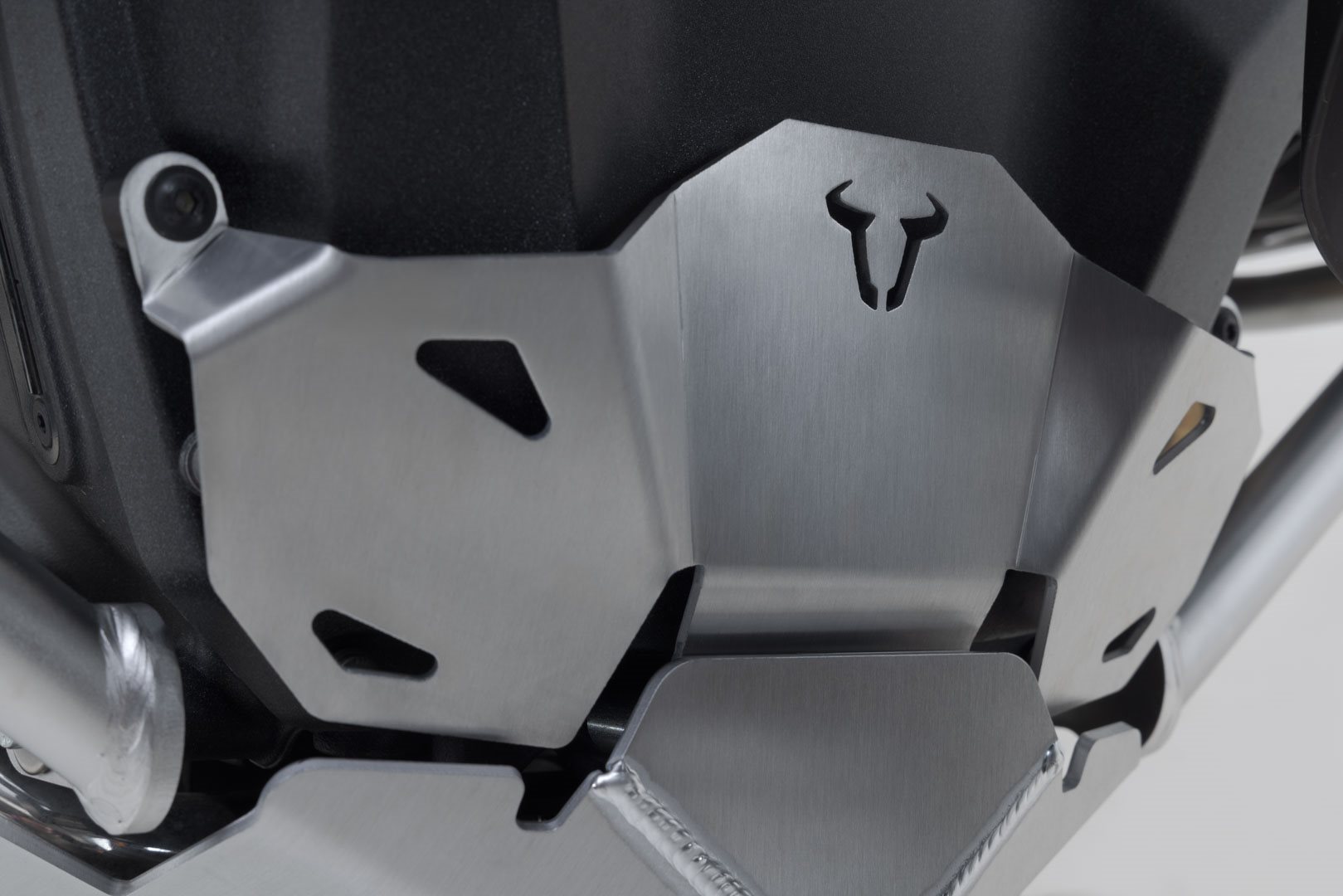 Die Motorschutz-Verlängerung schützt den vorderen Bereich des Motorblocks vor Steinschlag. Der Protektor aus gebürstetem und pulverbeschichtetem Aluminium kann nur montiert werden, wenn der SW-MOTECH Motorschutz ebenfalls montiert ist.