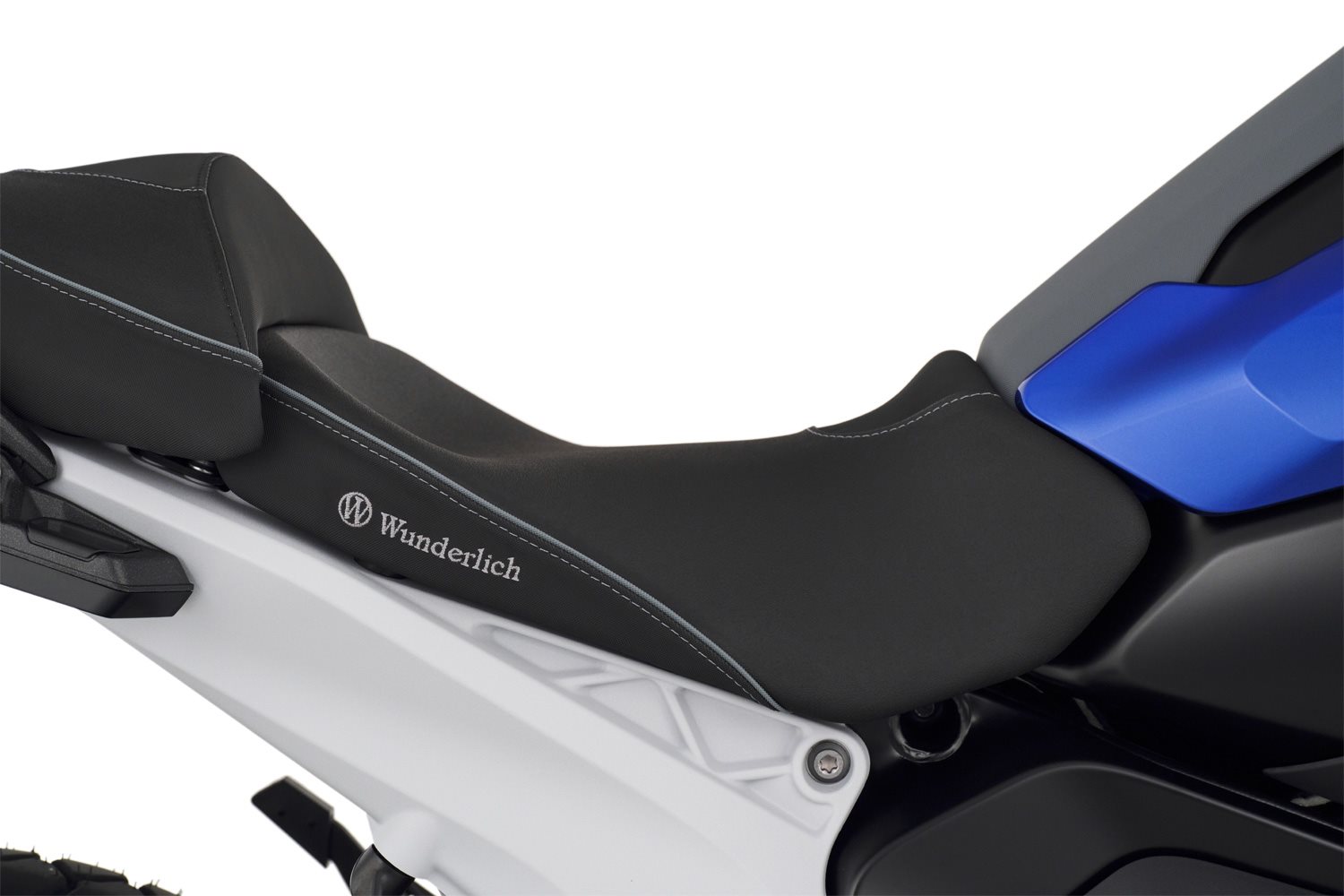 Das Durchsitzen der Polsterung wird aufgrund der durchdachten Konstruktion zuverlässig vermieden und der Sitzdruck auf einer größeren Fläche gleichmäßig verteilt, was zu einer spürbar geringeren spezifischen Druckbelastung am Allerwertesten führt. Angenehm! Die ergonomische Form des Spezialschaums entlastet zudem das druckempfindliche Steißbein. Sie bieten perfekten Halt und aktive, sichere Kontrolle bei forcierter Fahrt, ganz besonders auch beim Bremsen: Wer kennt das nicht, wenn die Sozia beim Ankern plötzlich von hinten schiebt und man sich unvermittelt abstützen und gleichzeitig, in einer vielleicht brenzligen Lage, auch noch lenken muss. Mit Wunderlichs eigens entwickelter Stützkontur gehören diese Schreckmomente beim Bremsen der Vergangenheit an. Die innovative, ergonomische 3-D-Kontur sorgt auch dafür, dass Druckstellen an den Innenschenkeln beim Stehen an der Ampel, passé sind.