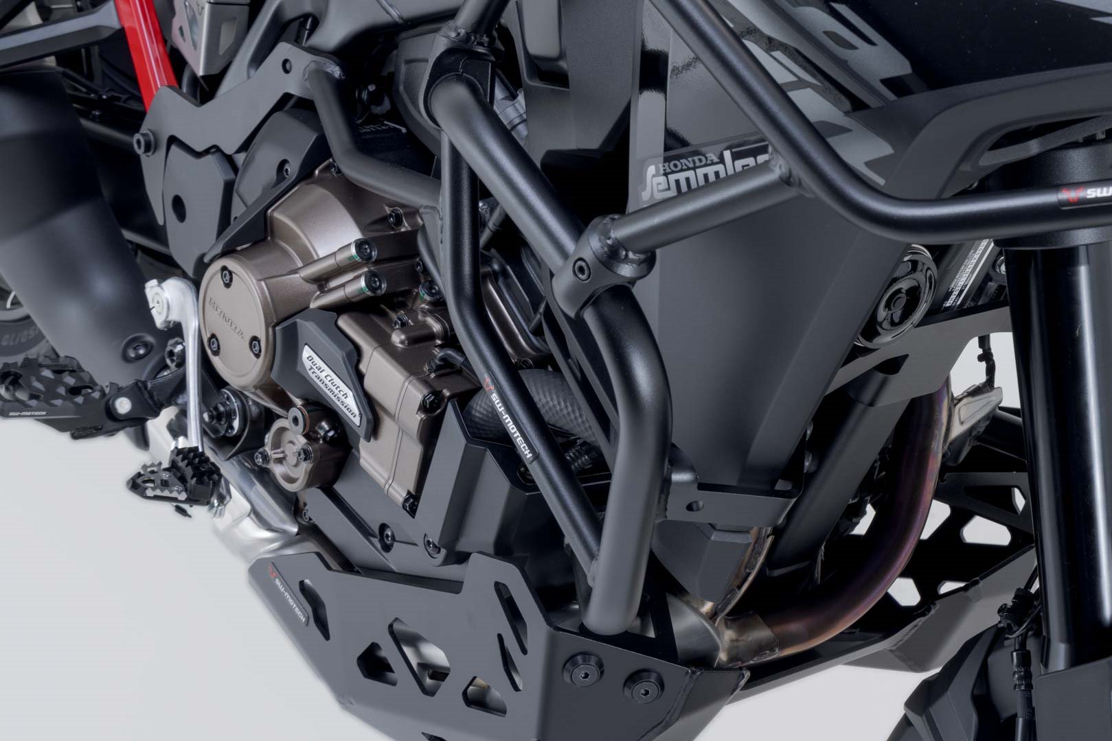 Passend zur Honda Africa Twin CRF1100L werden die Sturzbügel aus robustem Stahlrohr mit witterungs- und korrosionsbeständiger Pulverbeschichtung in Schwarz angeboten. Die Oberflächenveredelung erfolgt in einer hochmodernen Anlage im SW-MOTECH Werk im tschechischen Brünn.