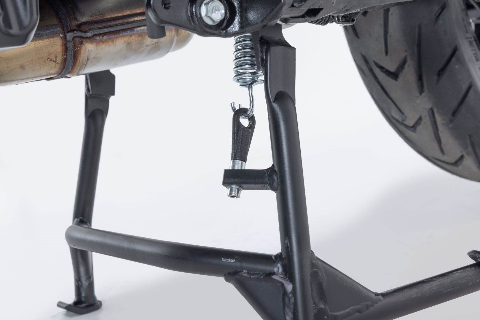Die unverwüstliche und dennoch leichte Stahlrohr-Konstruktion bietet beste Schräglagen- und Bodenfreiheit, einfaches Aufbocken und festen Stand ob bei der Wartung oder unterwegs. Die Anschaffung eines zusätzlichen Montageständers ist meist nicht mehr erforderlich. Ideal für die Wintermonate: bei längeren Standzeiten entlastet der Hauptständer die Reifen.