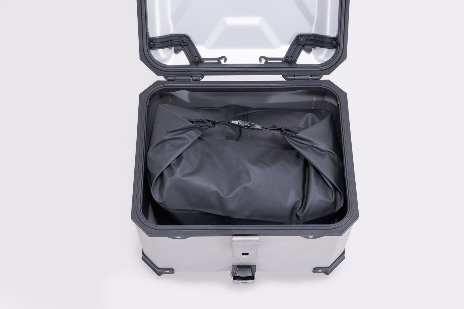 Diese aus schwarzem Tarpaulin gefertigte wasserdichte Innentasche, speziell auf das TRAX Topcase 38 l zugeschnitten, bietet nochmal zusätzlichen Schutz vor Wasser.