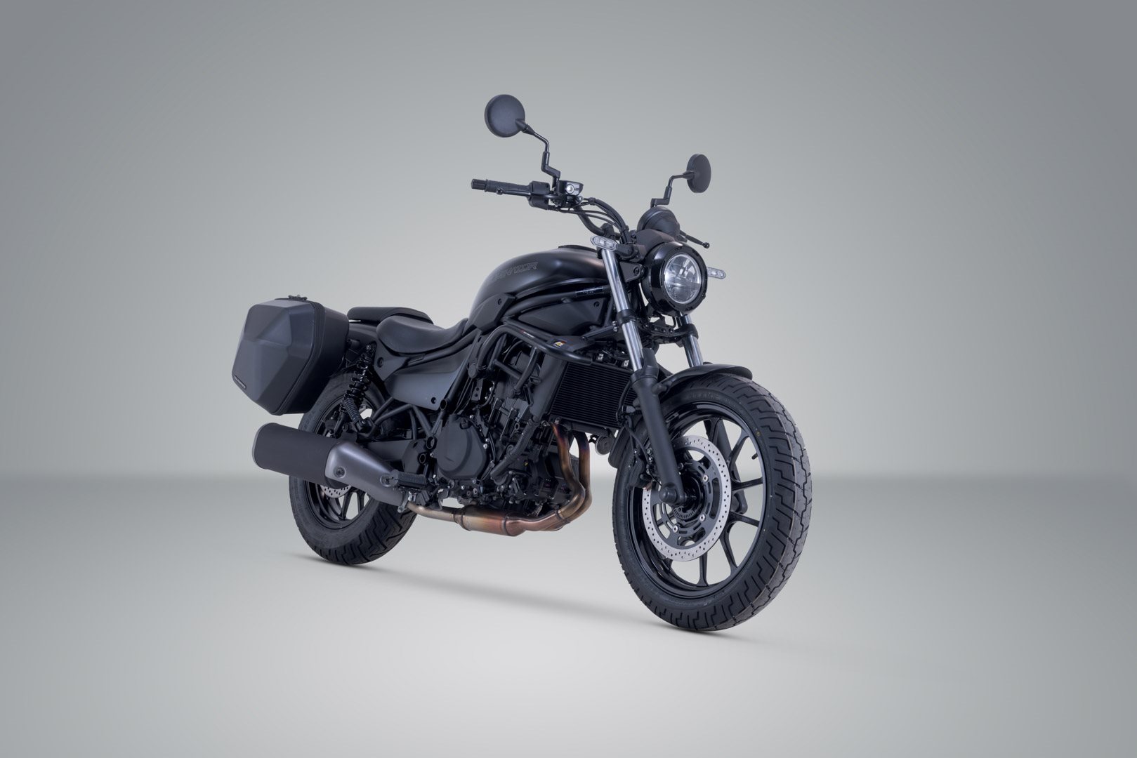 Mit dieser Kombination von SLC Seitenträgern und den URBAN ABS Seitenkoffern macht SW-MOTECH die Kawasaki Eliminator 500 startklar für längere Ausflüge mit mehr Gepäck.