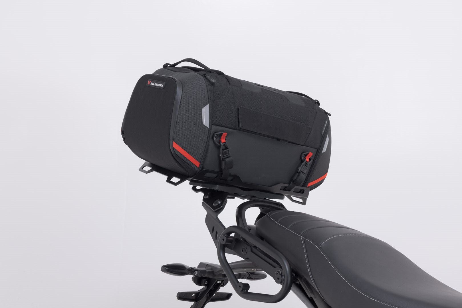 Die Hecktasche aus der PRO Serie fertigt SW-MOTECH aus unverwüstlichem 1680 D Ballistic Nylon und den Gepäckträger aus robuster Aluminium-Legierung. Die Befestigung des Trägers erfolgt an den modellspezifischen und belastbaren Anbaupunkten am Motorrad.