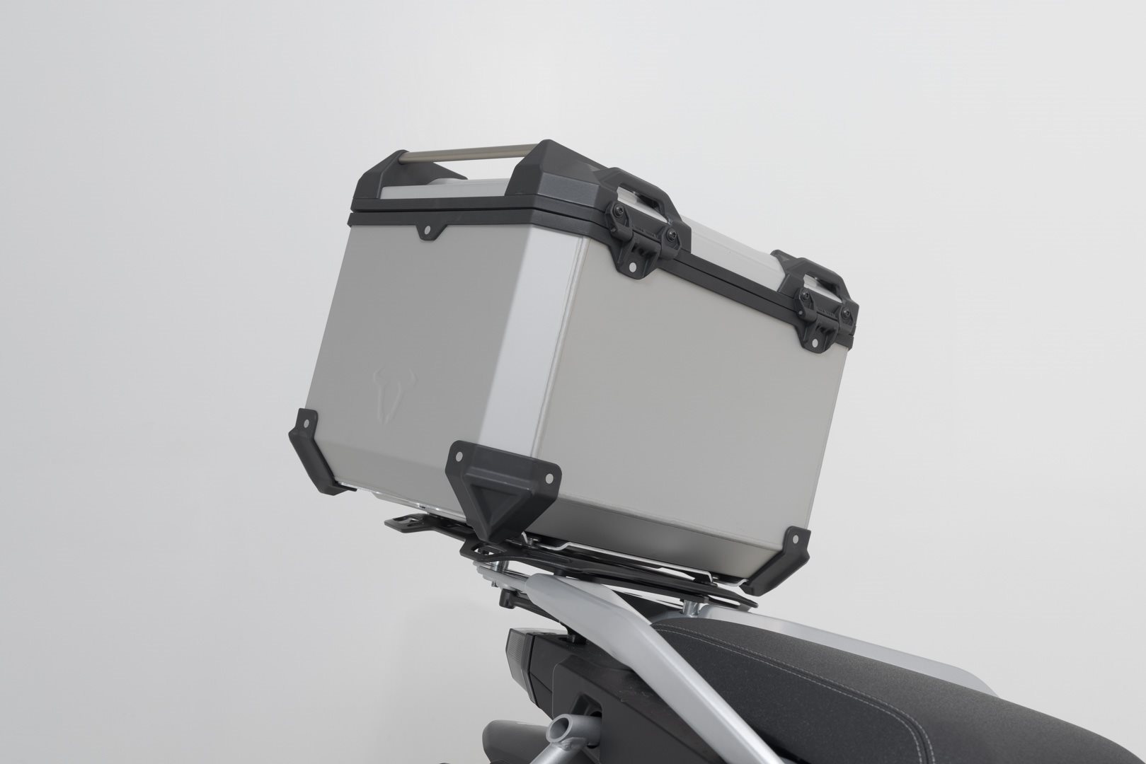 Der modellspezifische Gepäckträger und die Adapterplatte sichern den Halt des Topcases: es wird einfach aufgeschoben und mit Hilfe des abschließbaren Spannverschlusses arretiert.