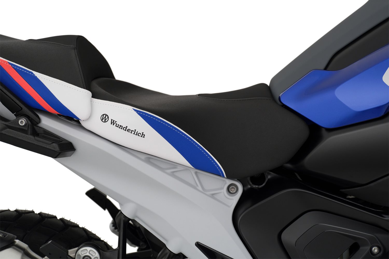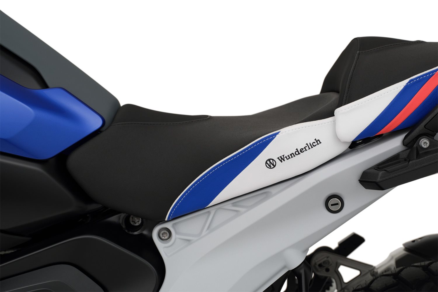 Das Durchsitzen der Polsterung wird aufgrund der durchdachten Konstruktion zuverlässig vermieden und der Sitzdruck auf einer größeren Fläche gleichmäßig verteilt, was zu einer spürbar geringeren spezifischen Druckbelastung am Allerwertesten führt. Angenehm! Die ergonomische Form des Spezialschaums entlastet zudem das druckempfindliche Steißbein. Sie bieten perfekten Halt und aktive, sichere Kontrolle bei forcierter Fahrt, ganz besonders auch beim Bremsen: Wer kennt das nicht, wenn die Sozia beim Ankern plötzlich von hinten schiebt und man sich unvermittelt abstützen und gleichzeitig, in einer vielleicht brenzligen Lage, auch noch lenken muss. Mit Wunderlichs eigens entwickelter Stützkontur gehören diese Schreckmomente beim Bremsen der Vergangenheit an. Die innovative, ergonomische 3-D-Kontur sorgt auch dafür, dass Druckstellen an den Innenschenkeln beim Stehen an der Ampel, passé sind.