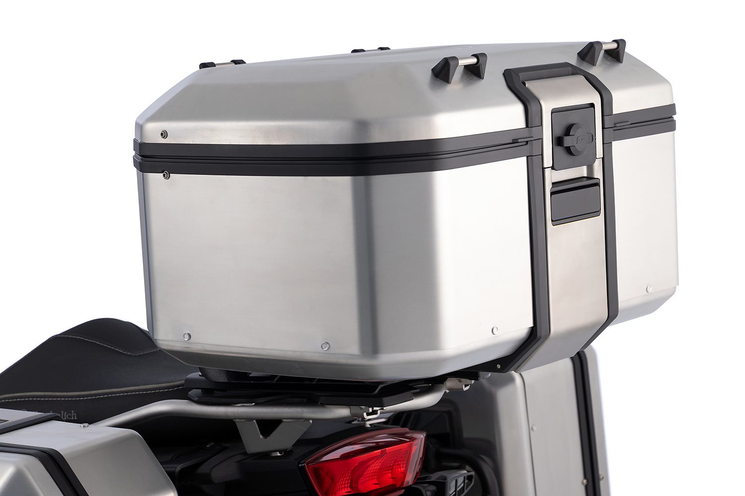 Das Anbringen am Träger ist unkompliziert. Der Schließmechanismus aus Edelstahl verfügt über einen integrierten, einklappbaren Tragegriff, der es ermöglicht, das Topcase in wenigen Sekunden zu öffnen, zu schließen, zu montieren oder demontieren. Das Integraldesign gibt sich zeitgemäß mit hohem Wiedererkennungswert.