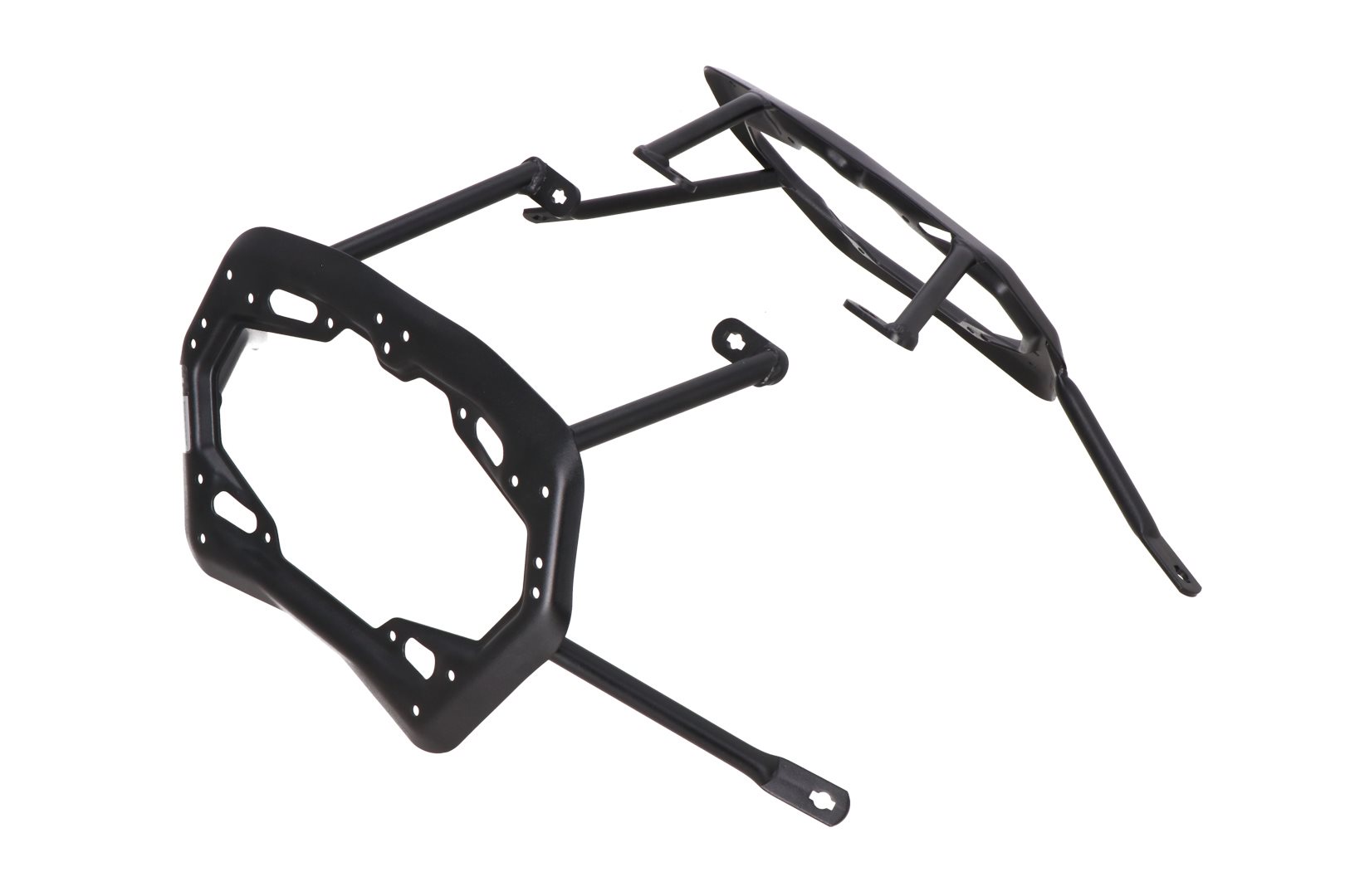 Der PRO Seitenträger gibt Seitenkoffern sowie der SysBag WP L sicheren Halt - die passenden Adapterkits sind separat erhältlich. Die zahlreichen Funktionsbohrungen des PRO Seitenträgers erlauben die Befestigung von anderem Zubehör.