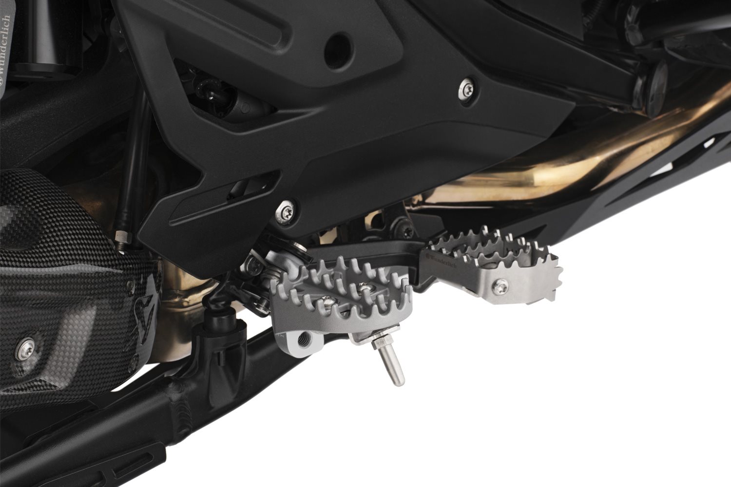 Funktion und Produktmerkmale Empfehlung Für größere Sicherheitsreserven empfehlen wir die Verwendung der Schräglagenindikatoren für die Original-BMW-Endurofußrasten in Kombination mit folgenden Wunderlich Motorschutzbügeln: Hinweis Die Gummieinlage der Original-Fußraste ist nicht kompatibel mit dem Schräglagenindikator. Sie muss entfernt werden, wenn der Indikator verbaut wird. Technische Daten Ihre Wunderlich Vorteile Viele von uns, die sich nicht permanent im Grenzbereich bewegen, empfinden das erste Aufsetzen der Fußraste bei der Kurvenfahrt mit einem neuen Bike als unangenehm. Die tiefsitzende Furcht ausgehebelt zu werden erschreckt nicht wenige. In der Folge richtet man das Bike instinktiv auf freilich ohne, dass dies bereits nötig wäre. Das allerdings vergrößert den Kurvenradius und kann zu gefährlichen Situationen führen. Dies gilt es zu vermeiden. Dabei ist das Aufsetzen der Fußraste in der Regel unbedenklich, denn moderne Bikes verfügen über klappbare Rasten, um das Aushebeln zu vermeiden. Häufig sind Bikes so ausgelegt, dass wenn ein Motorschutzbügel vorhanden ist - Fußraste und Schutzbügel nahezu gleichzeitig bei einem Schräglagenwinkel aufsetzen, der mit Hinblick auf die Haftung der Reifen unkritisch ist. Wichtig ist, sich bewusst zu machen, dass verschiedene Einflussfaktoren zum Beispiel die Beladung der Maschine oder das Durchfahren einer Senke oder eines Schlaglochs die Schräglage einschränken können. Für Fahrer, die sich mehr Reserven bei der Annäherung an den Asphalt wünschen, haben wir unsere Schräglagenindikatoren entwickelt, die einfach an der Außenseite der Original-BMW-Endurofußrasten verschraubt werden können. Die mit Schräglagenindikatoren ausgerüsteten Fußrasten lösen deutlich früher, bei geringerer Schräglage einen taktilen Reiz am Fuß aus. Mit der Rückmeldung wird der Grenzbereich deutlich früher angekündigt und wahrgenommen. Denn sie vermittelt behutsam und unaufgeregt, dass man noch genügend Reserven für den Grenzbereich hat und eben nicht am Anschlag ist. Sie stärken Vertrauen und Sicherheit. Wir haben unsere Schräglagenindikatoren maximal sicher konstruiert. Sie benötigen keinen Stromanschluss und keine Anzeigen, die ausfallen können. Unsere rein mechanische Lösung funktioniert unter allen Bedingungen. Der Indikator selbst ist mit Hinblick auf die Werkstoffwahl und seine Form so gestaltet, dass er wenig Widerstand bietet dafür perfekte und sichere Rückmeldung. Mittelbar sorgen die Schräglagenindikatoren für ein deutlich entspannteres Fahrerlebnis und steigern gleichzeitig Ihre aktive Sicherheit im Straßenverkehr.Beschreibung zu Wunderlich Schräglagenindikator für original BMW Enduro Fußrasten R 13 - Edelstahl - Satz anzeigen