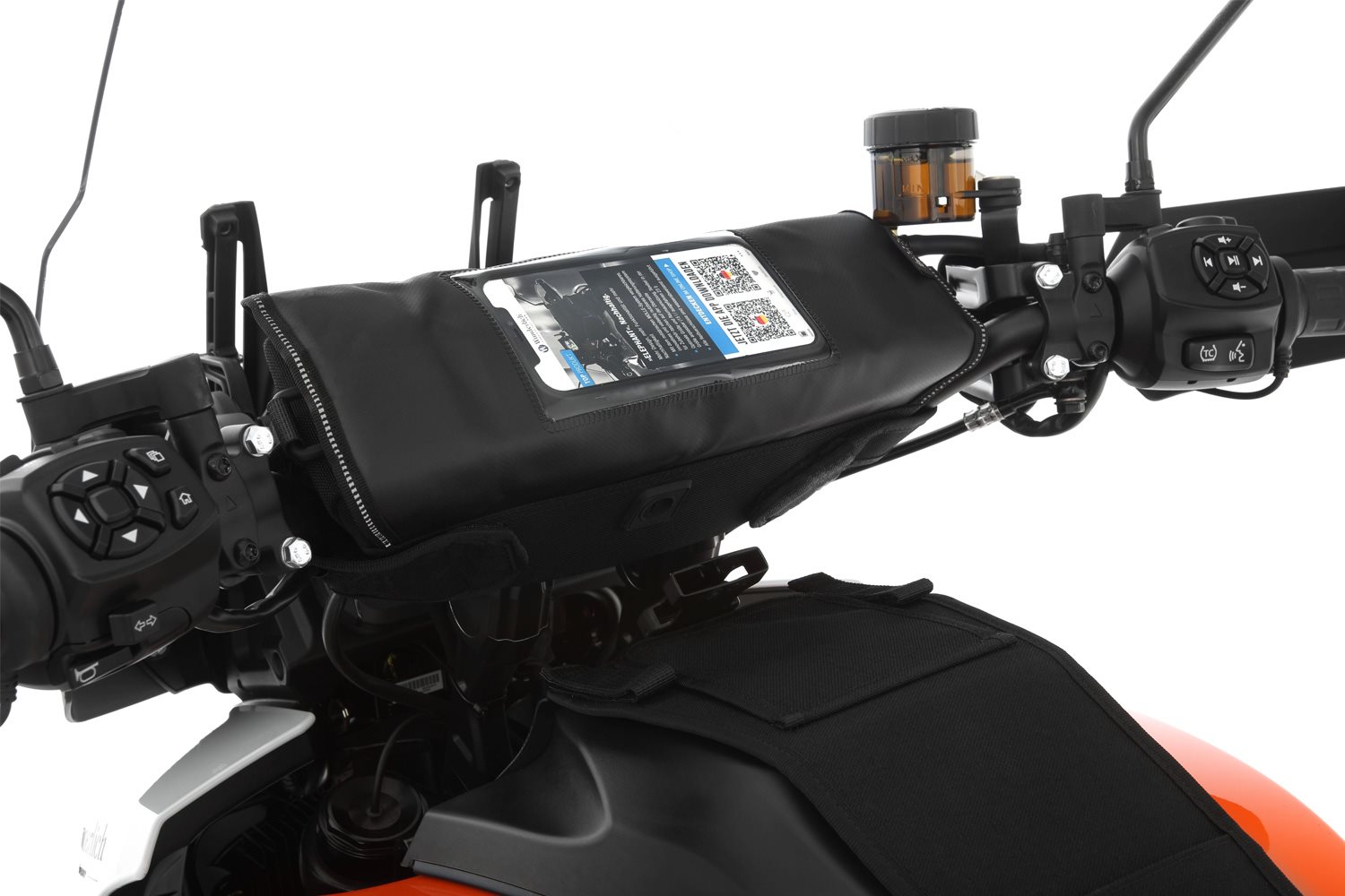 An alles gedacht: Im Media-Einschub befindliche Smartphones sind bei geeignetem Touchscreen bedien- und ablesbar, ohne dass das Smartphone entnommen werden muss. Wassergeschützter Kabelzugang zur Stromversorgung und zum Laden unterwegs