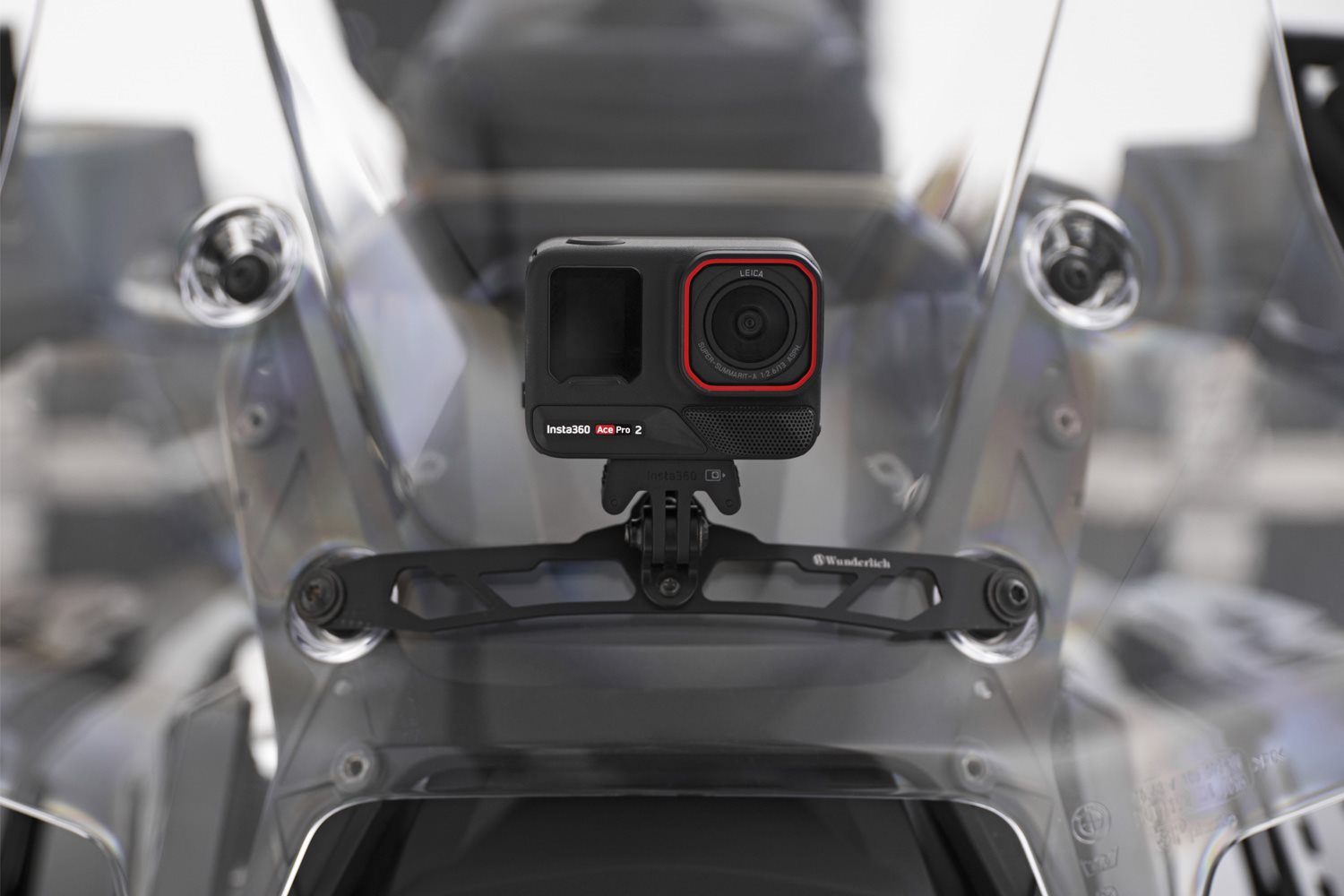 Die Wunderlich Action-Cam-Halterung für das hohe Original-Windschild der BMW R 1300 GS und GS Adventure