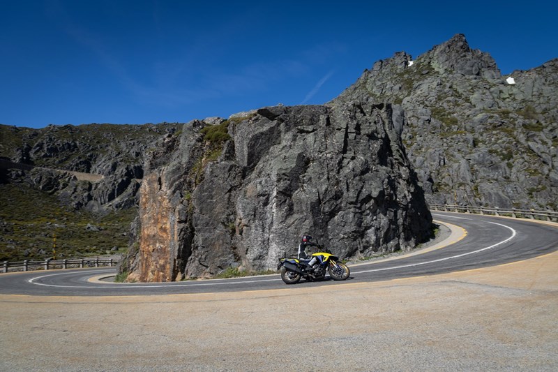 Die Straßen in der Serra da Estrela, obwohl sie guten Grip bieten, sind oft von schlechterer Qualität als in anderen Teilen Portugals, was die Region ideal für Reise-Enduros mit komfortablen Reifen macht, wie die von Bridgestone getesteten Modelle. Motorradfahrer können hier die Schotterpisten und Bergpässe in relativer Einsamkeit erkunden, umgeben von spektakulären Landschaften, die von schneebedeckten Gipfeln bis zu idyllischen Flusslandschaften reichen.