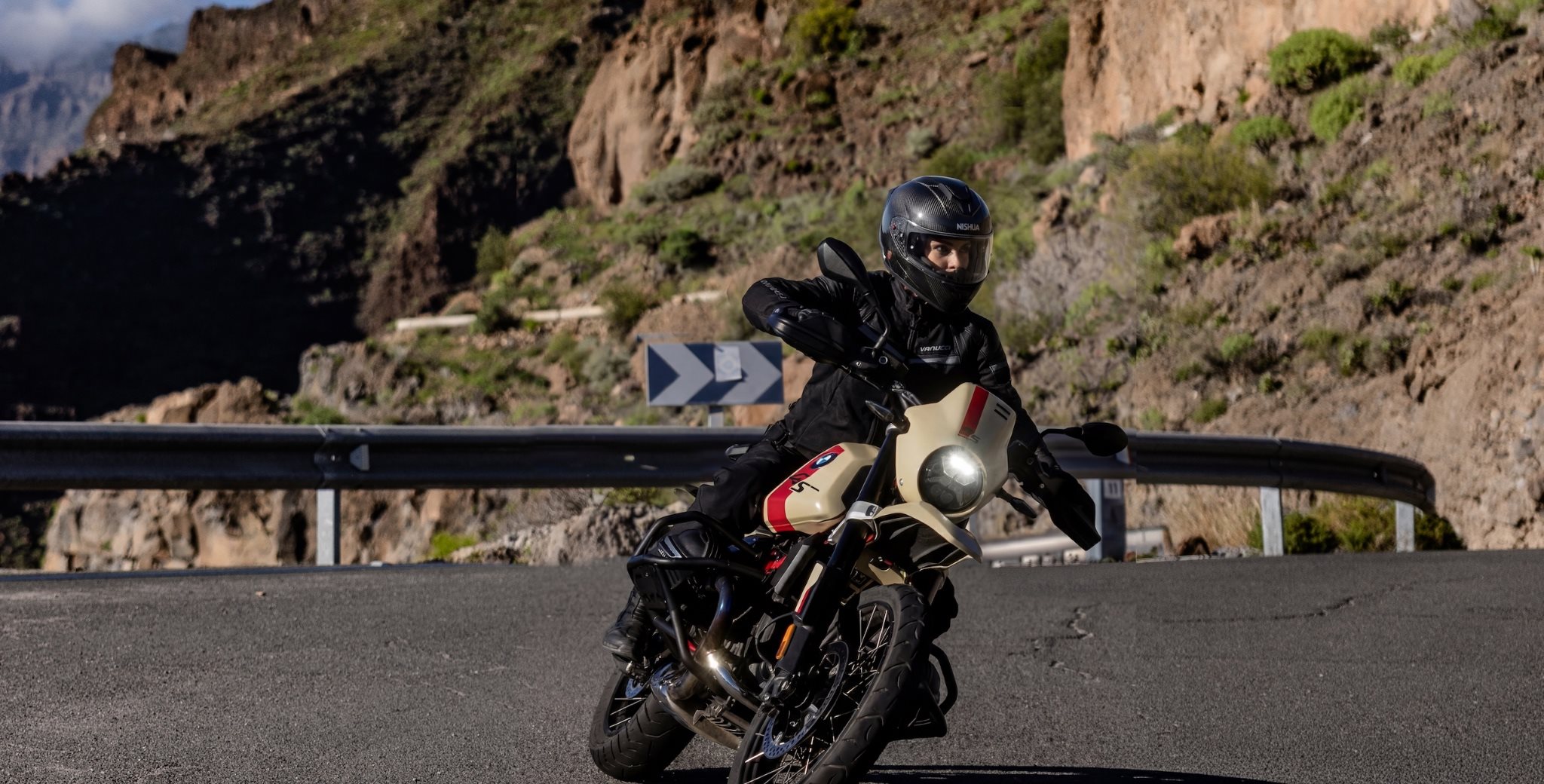 Gran Canaria ist so ein Ort, der Motorrädern alles verzeiht. Sonne oft von früh bis spät, Asphalt wie frisch gebügelt und Kurven, die dir irgendwann am Nachmittag fast schon vertraut vorkommen. Wir waren mit mehreren BMW-Modellen unterwegs, die Kollegen gut verteilt, jeder irgendwo mit Helm unterm Arm und diesem leichten Zeitdruck im Nacken, den man bei solchen Terminen immer hat. Am Vortag die R 1300 GS, sehr intensiv, sehr logisch. Heute dann endlich die BMW R 12 G/S. Dieses Motorrad hat uns schon auf Fotos nervös gemacht. Schön, roh, ein bisschen provokant. Als wir dann davorstanden, irgendwann zwischen Vormittag und Mittag, war dieses Gefühl wieder da: Respekt. Nicht Angst. Respekt. Beim ersten Aufsteigen wirkt sie größer, schwerer, mächtiger als erwartet. Die Sonne steht schon hoch, irgendwo klappert Werkzeug, ein Kollege flucht leise und murmelt etwas über die Onboard-Kamera-Halterung. Und ich denke mir nur: Okay, Maria. Jetzt schau ma mal, wer hier wen erzieht.