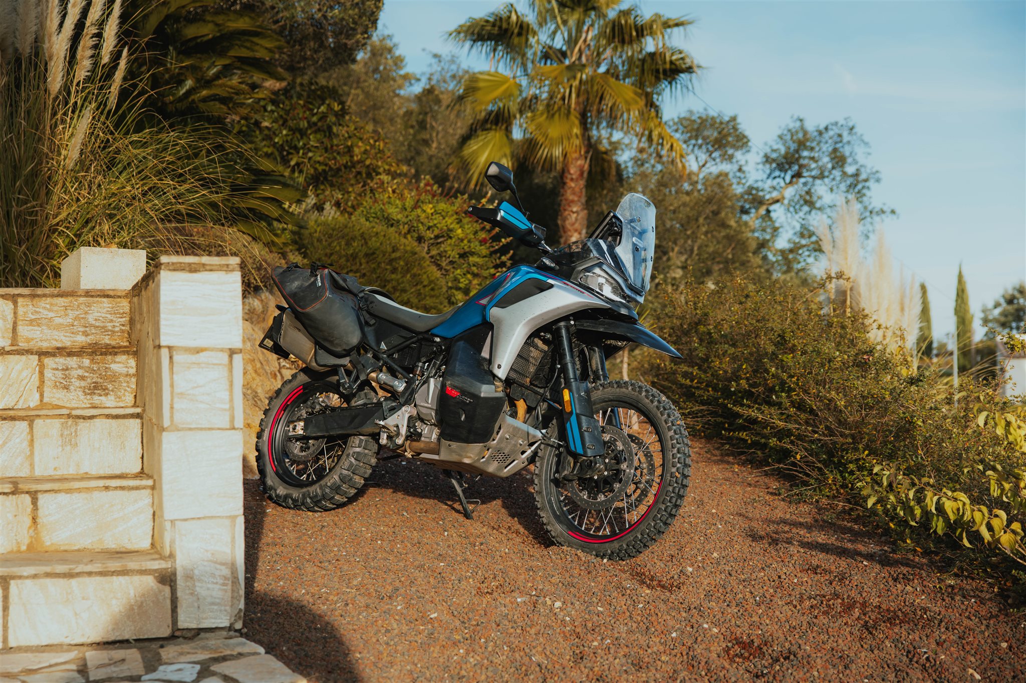 In Spanien musste die CF MOTO 800 MT-X arbeiten. Mehrfach umgefallen, im Geröll gelegen, im Sand festgefahren, am Hang gewendet. Und das alles ohne zusätzliche Schutzteile.