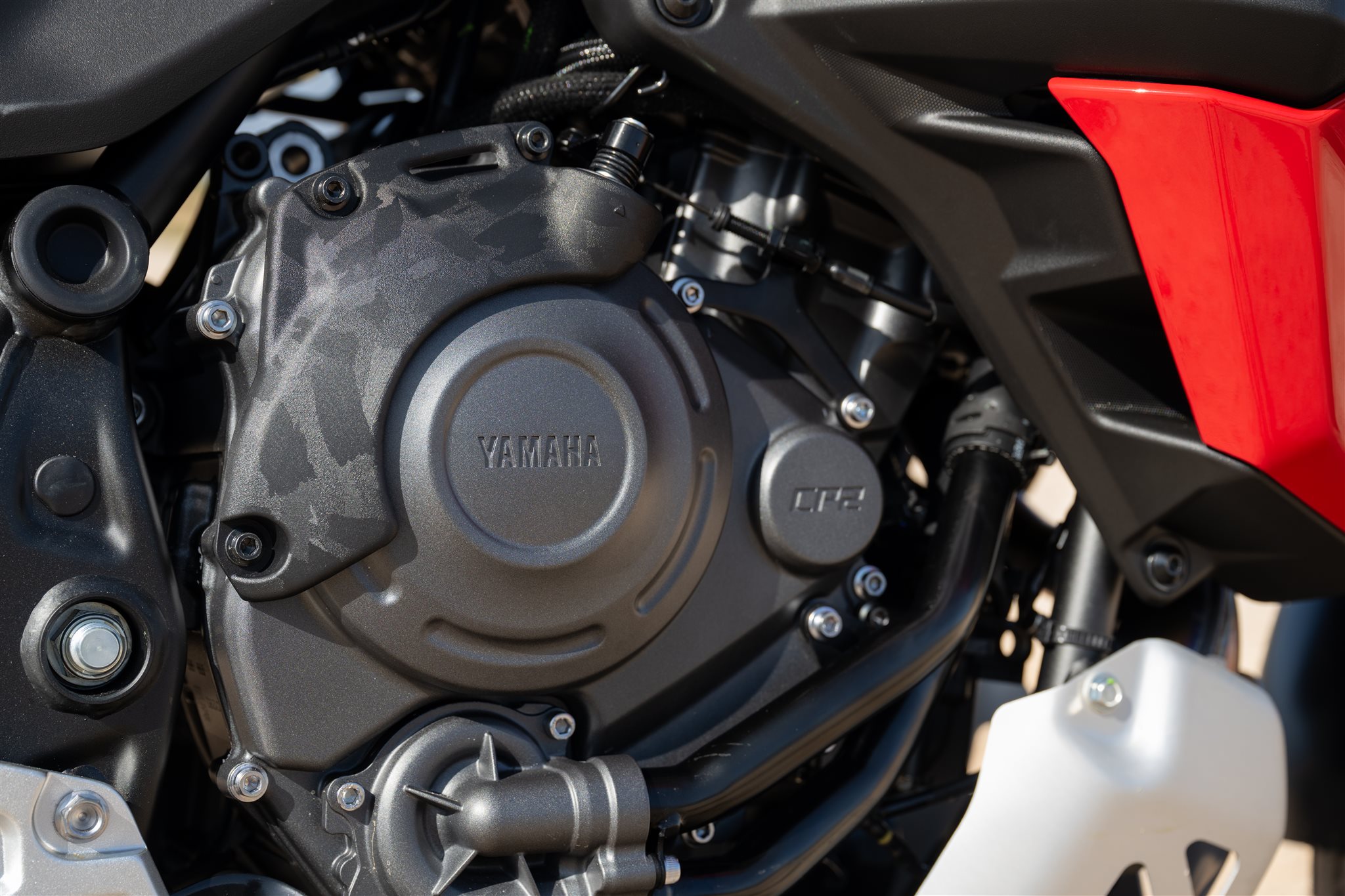 Im Herzen der World Raid arbeitet weiterhin der bekannte CP2-Parallel-Twin, der bekanntlich in vielen anderen Yamaha-Modellen ebenfalls zum Einsatz kommt. Der flüssigkeitsgekühlte Zweizylinder mit 689 Kubik Hubraum liefert weiterhin rund 73,4 PS und 68 Nm Drehmoment. Für 2026 hat Yamaha den Motor der World Raid nach Vorbild der anderen Modelle dennoch überarbeitet. Das Triebwerk erfüllt nun ebenfalls die aktuelle Euro5+ Abgasnorm und erhält erstmals Ride-by-Wire. Dadurch werden zwei Gas-Ansprechverhalten möglich: ein direkter abgestimmter Sport-Modus sowie ein etwas sanfterer Explore-Modus, der sich besonders für schwierige Untergründe anbietet.