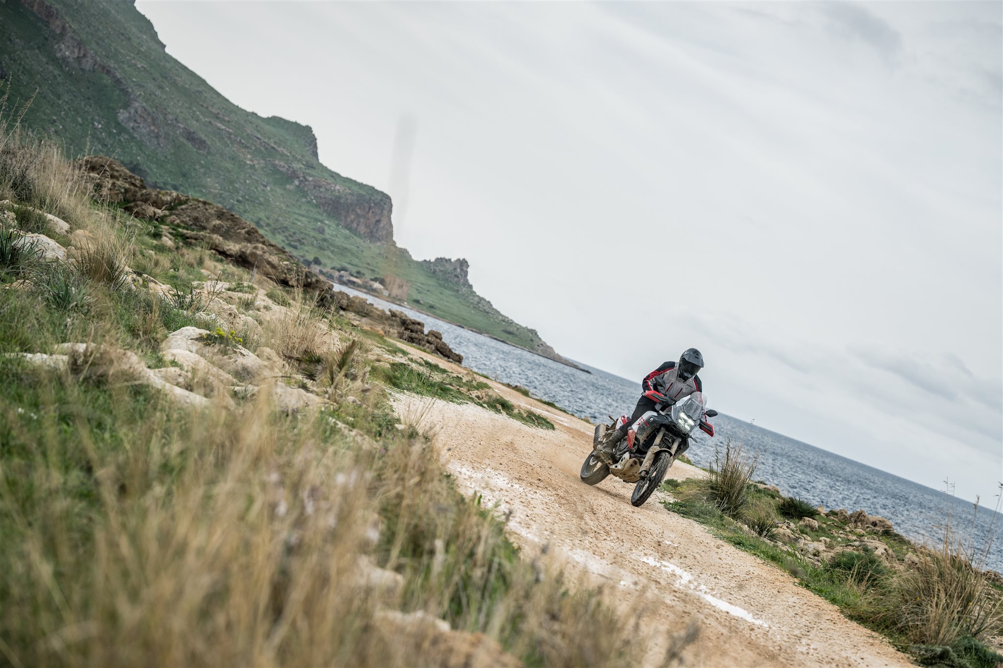 Dass der Motor nicht zu den stärksten Aggregaten im Adventure-Segment gehört, liegt auf der Hand. Gerade auf der Straße merkt man nach schaltfaul im dritten Gang gefahrenen Serpentinen, dass 74 PS in einer vollgetankt 220 Kilo schweren Reiseenduro keine überdimensionierte Leistung darstellen. Wer zu zweit unterwegs ist oder einen sportlichen Fahrstil pflegt, wird feststellen, dass der Motor bis Topspeed 181 kmh zwar durchaus kräftig anschiebt, aber dennoch keine Bäume ausreißen kann. Im Gelände zeigt sich jedoch ein ganz anderes Bild. Hier spielt der CP2 seine Stärken aus. Die Leistungsentfaltung ist angenehm kontrollierbar, der Motor hängt sauber am Gas und liefert auch ohne Kupplungseinsatz genau jene Art von elastischem Drehmoment, die man auf Schotterpisten oder technischen Passagen braucht.