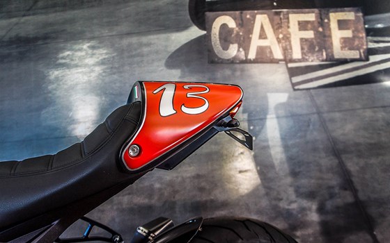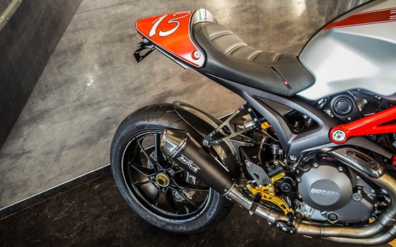 Ducati Monster 1100 evo im Cafe Racer Look. Geschmackvoll veredelt vom Zweiradparadies Denk- Remus Hypercone Auspuff