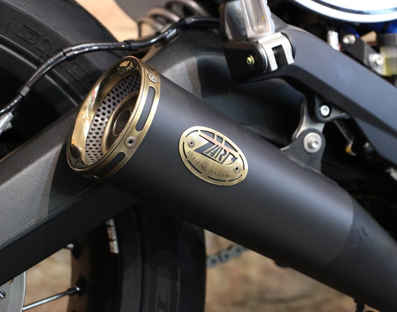 Das Headlight haben wir mit schicken Rizoma Club Blinkern versehen um die Kanzel noch schlanker aussehen zu lassen. Der Kennzeichenträger wurde von uns entworfen und angefertigt, nach der Art des Hauses! Das originale Rücklicht haben wir entfernt und dafür die Rizoma Club-Blinker mit Blink-, Positions- & Rücklicht verbaut! Das Ergebnis ist ein extrem cleanes Heck mit schicken Performance-Parts. Der Krümmer wurde Ceramik-Beschichtet und der originale Endschalldämpfer wurde durch den Zard Zuma Slip-On Dämpfer ersetzt.