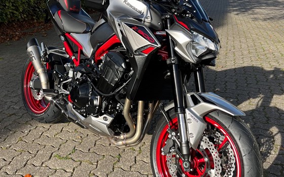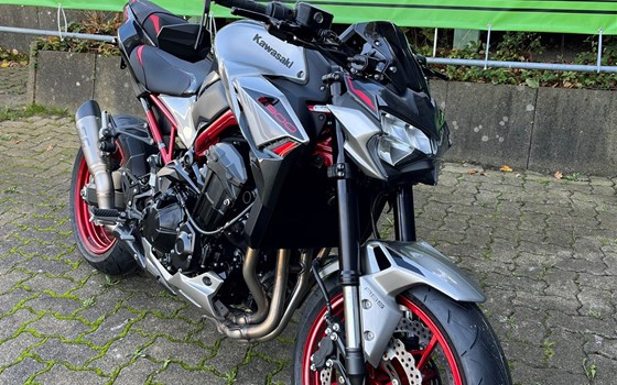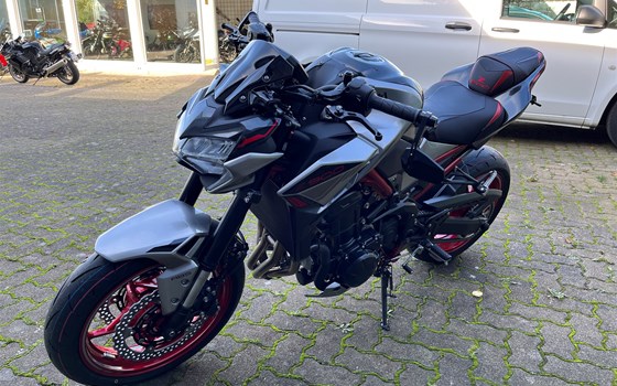 Die Kawasaki Z900 2023 Motbox-Edition mit folgendem Zubehör: