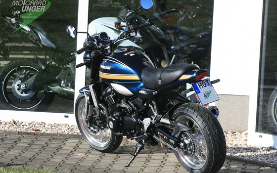 Bei diesem Fahrzeug handelt es sich um eine brandneu Kawasaki Z900 rs, welche mit einem kurzen Kennzeichenhalter und mit Speichenrädern umgebaut wurde. Weiter Infos gibt es bei uns unter Telefon 03723/ 42233 oder info -at- motorrad-unger.de