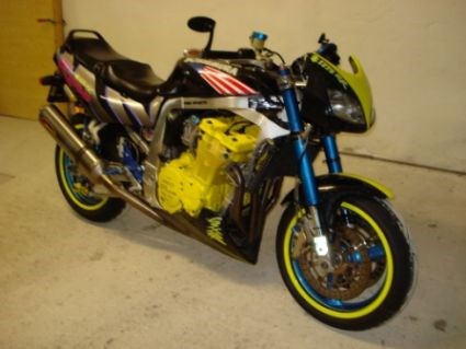 mizu-lampenmaske, superbikelenker+vbrücke, kellermannblinker, bugspitz, tank+heck airbrusch, motor-gelb-pulverbeschichtet mit gravuren, blauelox-schrauben, felgen-spez.Lack,gesamtes Fahrzeug Einzelgenehmigt