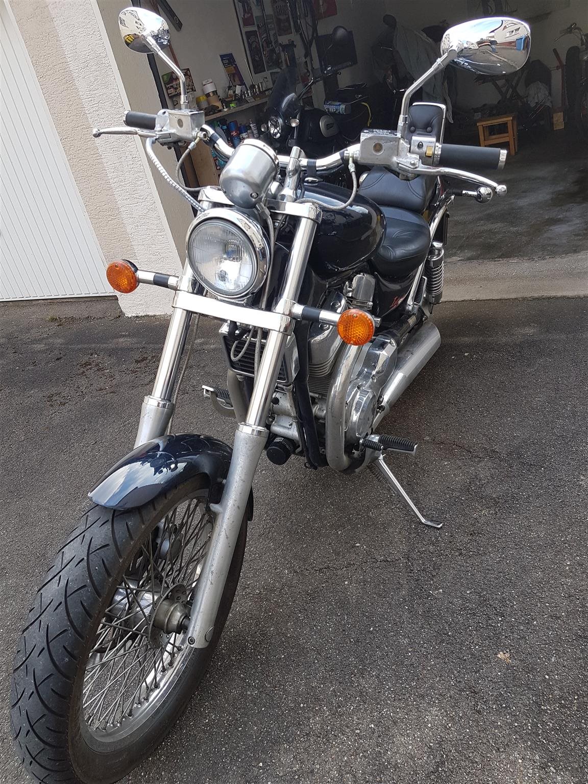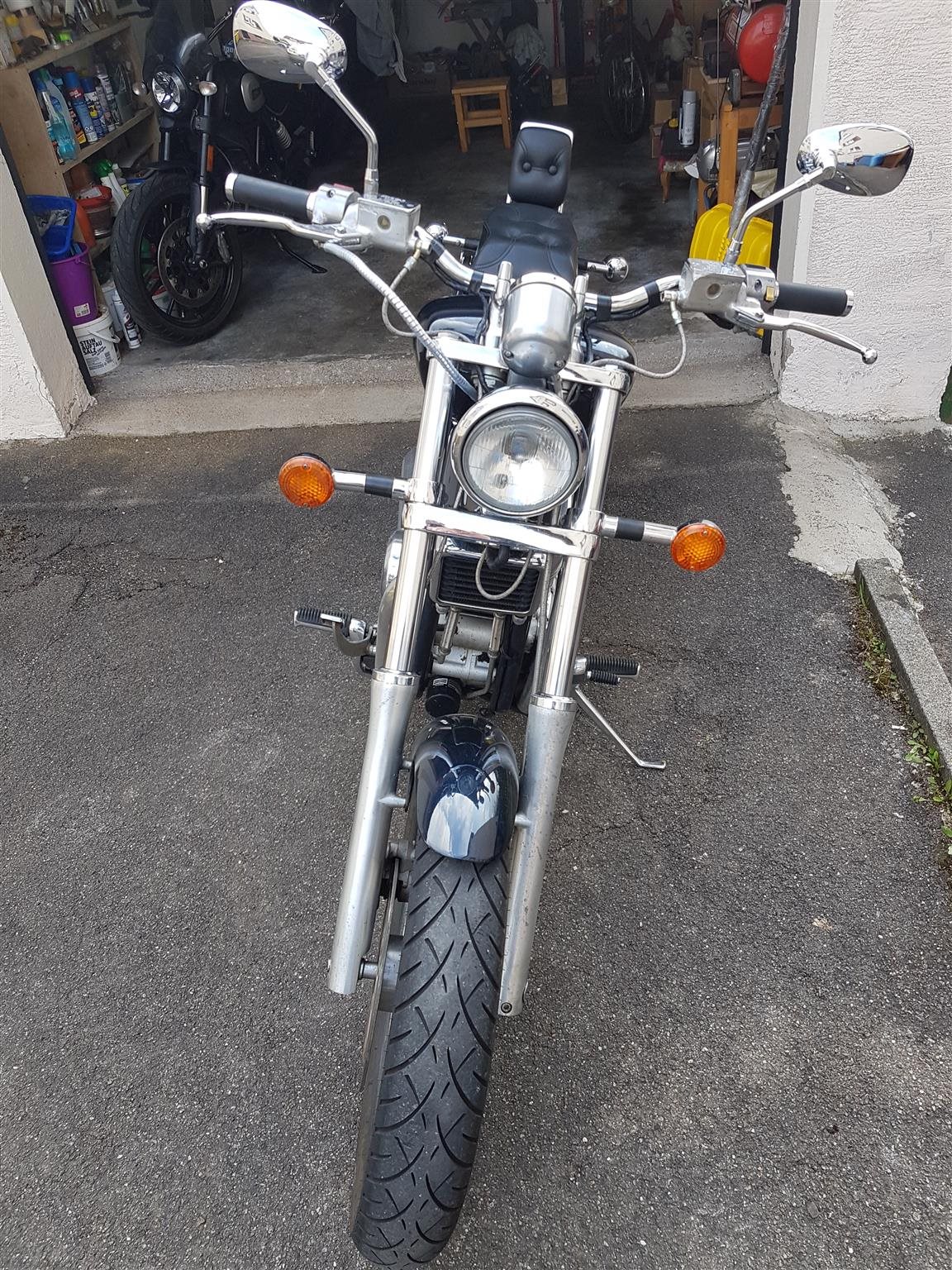 Lenker und Spiegel geändert. Gabelfedern verstärkt ebenfalls die Kupplungsfedern. Vergaser synchronisiert nach angepasster Bedüsung. Motor zieht sauber durch und das Fahrwerk sicherer, etwas sportlicher.