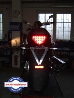 Umgebaut wurde an diesem Bike das Rücklicht, der Kennzeichen-Halter und die Blinker war eine ganz schöne Fummelei - hat sich aber auf alle Fälle gelohnt! Das Bike sieht ums "Hinterteil" jetzt viel hübsche aus ;-)Jetzt fährt die Trude auch noch auf dicken Hinterreifen.