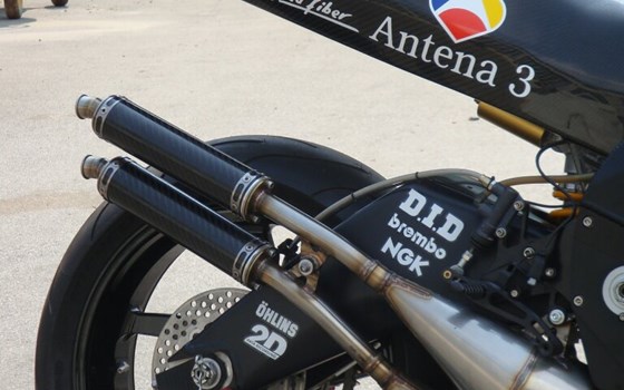 Replica von Norick Abe´s 1999 YZR500 im ANTENA 3 Dekor;Verkleidung, Tank und Sitz originalgetreue Carbonnachbauten wie YZR500 aus 1999 (von Original-Werksteilen abgeformt). Alle Aufkleber von TAMIYA Bausatz nachkonstruiert.