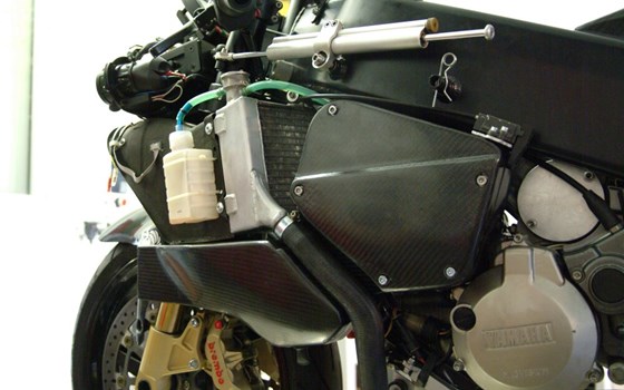 Einzelanfertigung: Alu-Brückenrahmen nach Vorlage YZR500. Hinterradschwinge YZR-R6 mit WILBERS Federbein; vorne ÖHLINS Gabel. Magnesium-Räder Marchesini. Verkleidung, Tank und Sitz originalgetreue Carbonnachbauten wie YZR500 aus 1991 (von Original-Werksteilen abgeformt)Optik